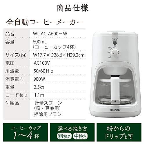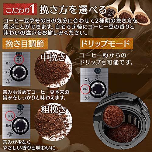 通常1-5営業日で発送:商品サイズ(cm):幅約17.7×奥行約28.6×高さ約29.2定格電源: AC 100V、50/60Hz消費電力: 900W付属品:計量スプーン(粉・豆兼用)(掃除用ブラシ付き)ドリップ容量: 600mL(4杯分)●電源コード長さ: 1.1m●モード:粉:粉でコーヒーをドリップ、豆1:豆を粗挽きしてドリップ、豆2:豆を中挽きしてドリップ本体重量(kg):