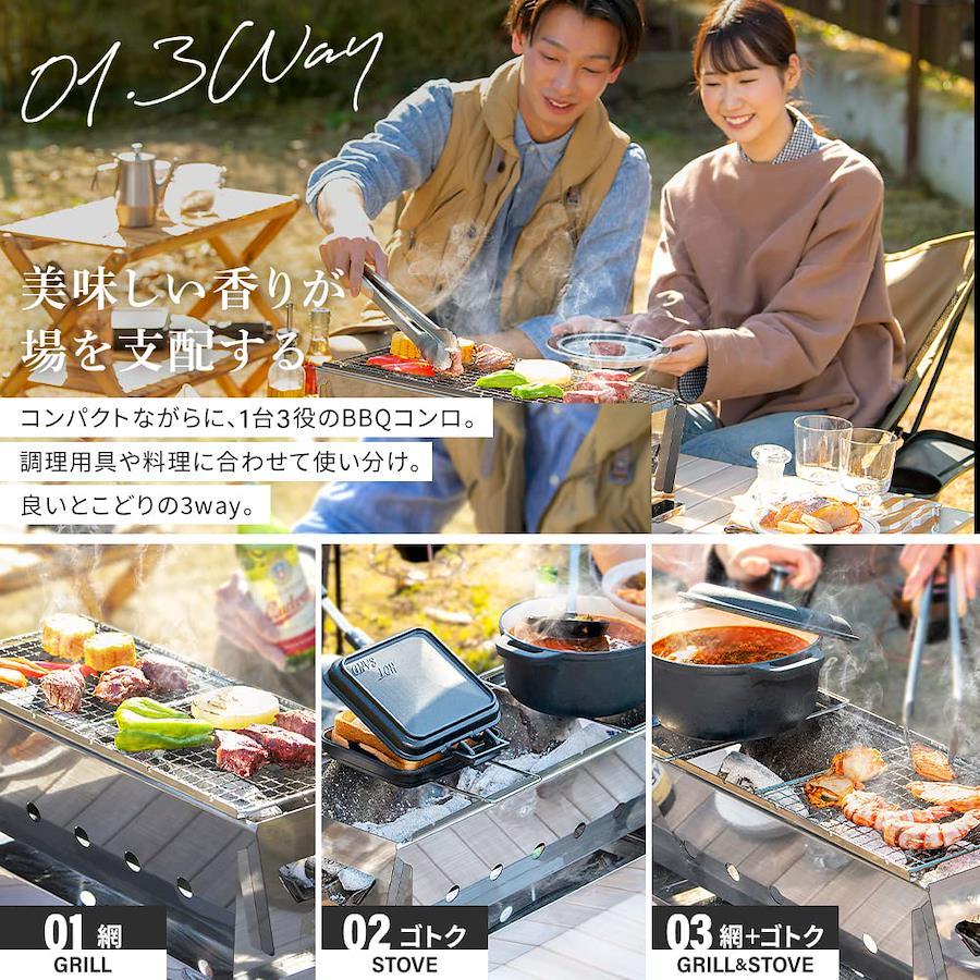 アウトドアの醍醐味であるBBQを、持ち運びに便利なコンパクト収納タイプで。<3~4人向け>