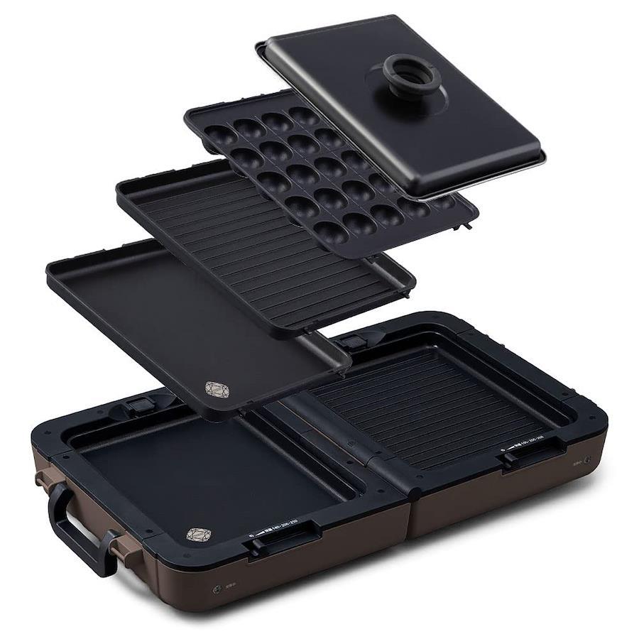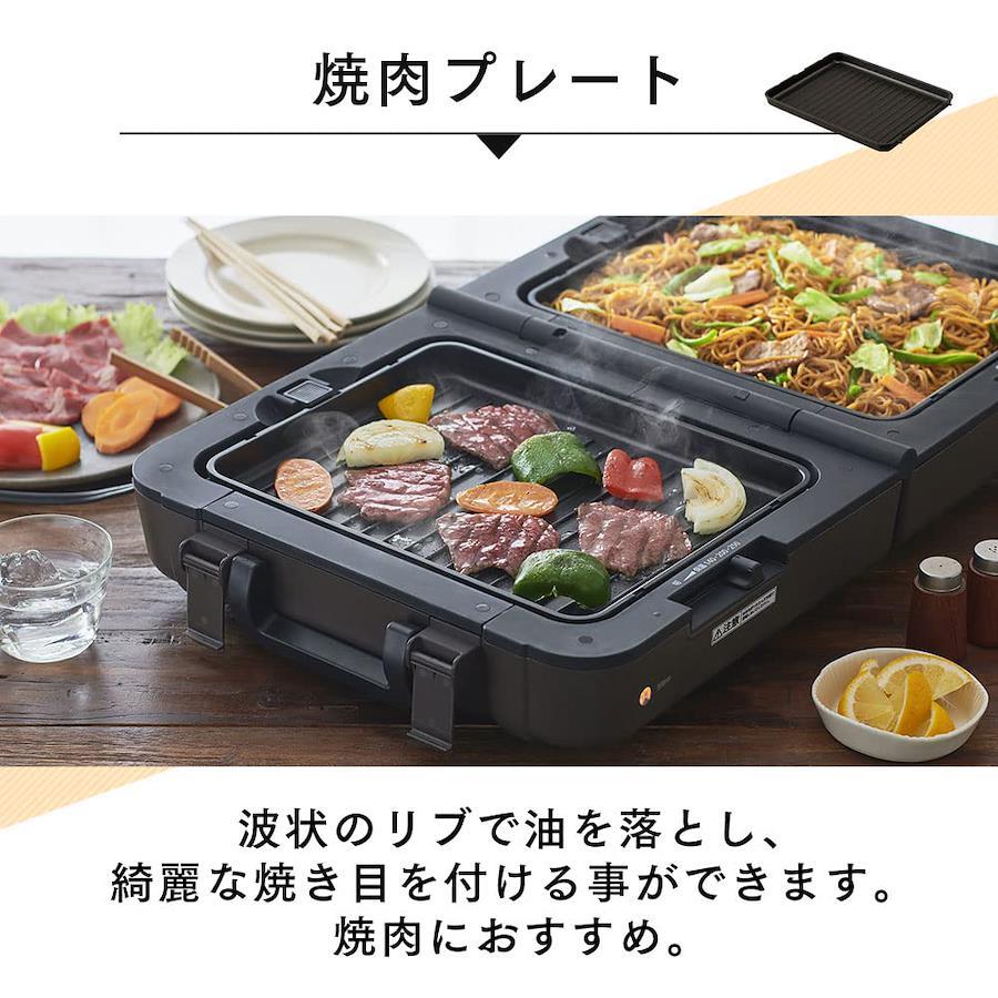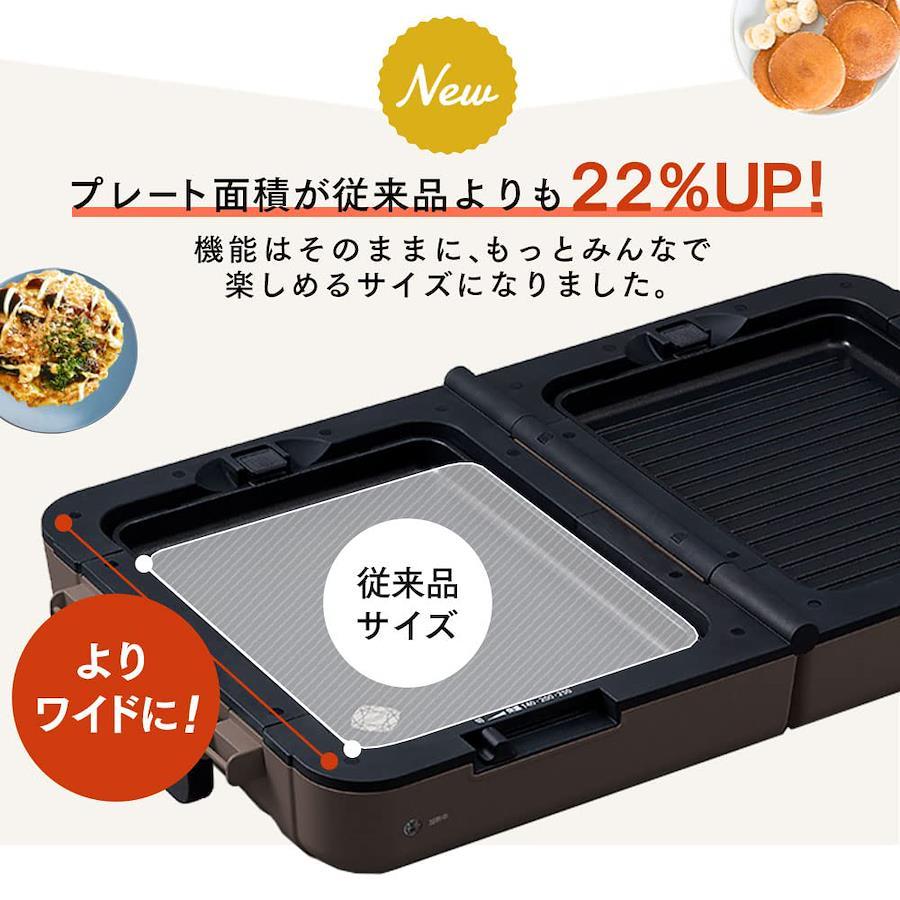 3営業日以内に発送≪新品未開封品≫:商品サイズ(cm):使用時/幅約64.7×奥行約36.3×高さ約9.3、折り畳み時/幅約16.7×奥行約36.3×高さ約34製品質量(全てのプレート・ふた装着):約6.8kg ●電源:AC100V(50/60Hz共用)定格消費電力:1300W ●ヒーター:650W×2温度設定:切・保温・約140℃・約200℃・約250℃ ●電源コード長:約2.5mセット内容:本体、ふた、平面プレート、焼肉プレート、たこ焼きプレート
