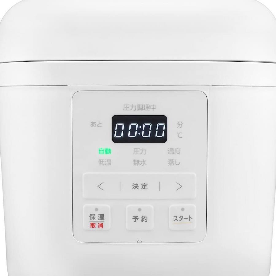 3営業日以内に発送≪新品未開封品≫:商品サイズ(cm):幅約30.0×奥行約28.0×高さ約28.6●商品質量:約4.0kg電源:AC100、50/60Hz●定格消費電力:700W炊飯容量:3合●圧力調整装置作動圧力:70kPa●調理容量:2.0L満水容量:3.0L●電源コード:長さ約1.0m付属品:蒸しプレート、ふたスタンド、計量カップ、レシピブック、取扱説明書