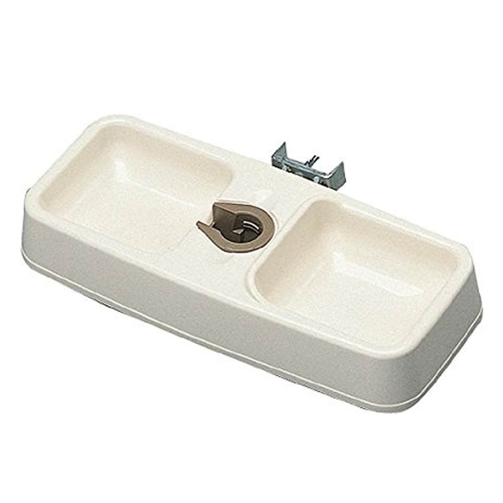 給水皿とエサ皿が一つになった便利な食器です。室内用サークル・ケージに接続して使用できるハンガー付です。市販の500mlペットボトル(外径28mm)を使用します。