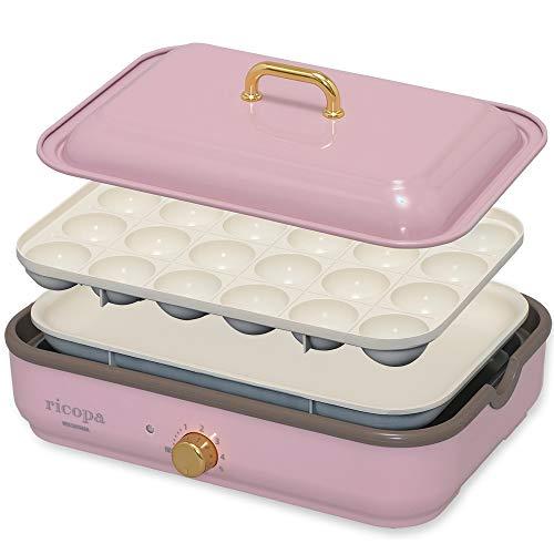Iris Ohyama Hot Plate 2WAY (Takoyaki Plate Flat Plate) ricopa Ash Pink MHP-R102-PA