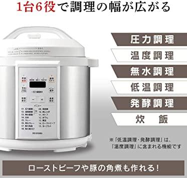 待望の大容量タイプが新登場!家族も大満足の大容量で、炊飯なら最大6合まで対応。これ1台で圧力調理から、温度調理、無水調理など料理の幅がグッと広がります。また、13種類の自動メニューが搭載されているためボタン1つで簡単に作ることができ、本格料理をご自宅で楽しめます。圧力鍋には欠かせないお掃除も、分解できるので隅々までお手入れが可能です。