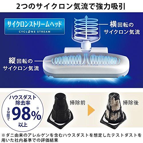 ◆吸引ハウスダスト除去率3分間で98%(※)以上。ヘッドの内部でサイクロン気流を発生させ、ハウスダストをかきだして吸い取ります。※ダニ由来のアレルゲンを含むハウスダストを想定したテストダストを用いた社内基準での評価結果