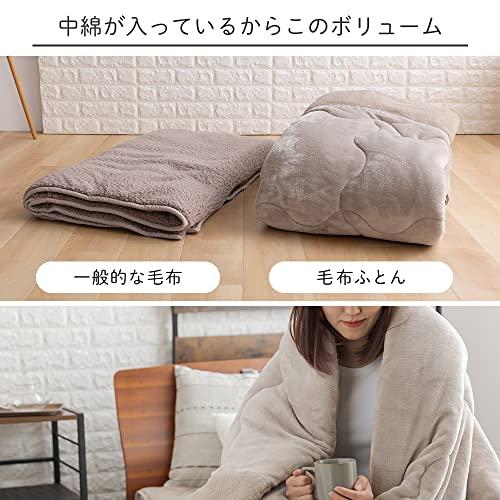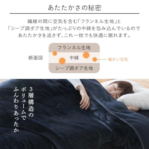 ふんわりあったかボリュームシープタッチの毛布布団。丸洗いできるので清潔安心です。 商品サイズ(cm):幅約140×奥行約200 商品重量:約1.65kg 材質 表地/毛羽部分:ポリエステル100%(フランネル) グランド部分:ポリエステル100% 衿・裏地/毛羽部分:ポリエステル100%(シープ調ボア) グランド部分:ポリエステル100% 中綿:ポリエステル100% 中綿重量:0.61kg