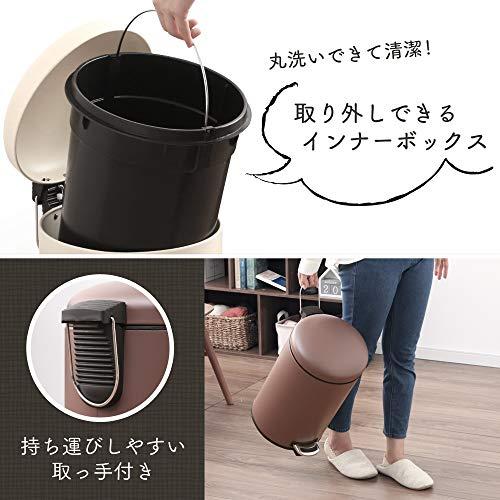 持ち運びできる取っ手付き。 商品サイズ(cm):Φ約25×高さ約42 容量:12L インナーボックスサイズ(cm):Φ約23.7×高さ約35 材質:本体・ふた:スチール/インナーボックス・ペダル:PP 開口機構:ペダル