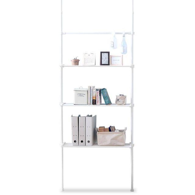 スタイル:ワイヤー/棚付き◆商品名:【洗面所でのタオルハンガーにも】アイリスプラザラック壁面耐荷重各5kg天井170~260cm対応幅68ホワイトワイド壁面スリムTWR-680