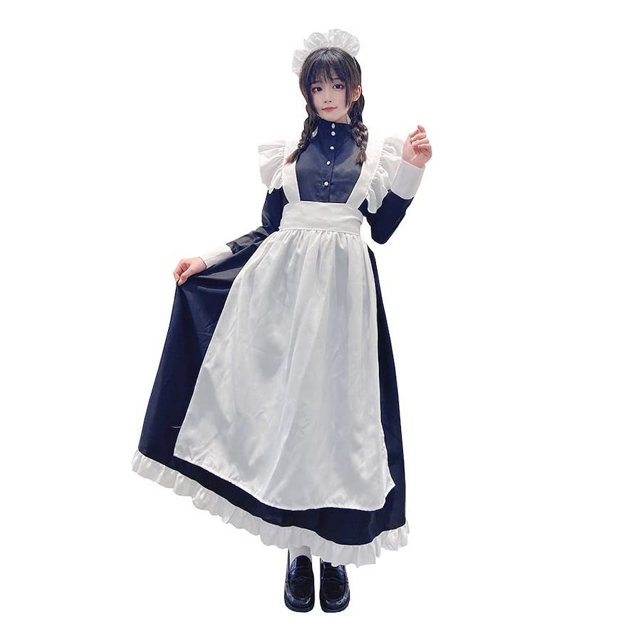 IRIWA British-style Maid Costume, Long Black and White Dress, Halloween Cosplay Costume, 4-Piece Set, Classical Style, Long Sleeves, Women's and Men's, Plus Sizes