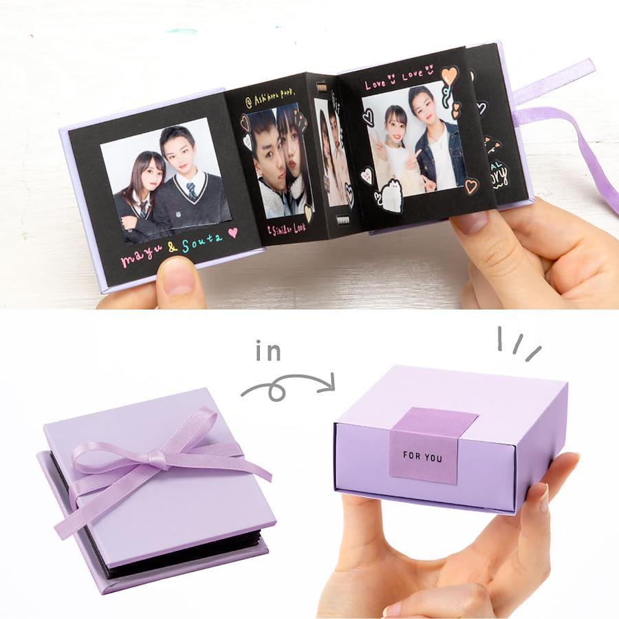 3営業日以内に発送≪新品未開封品≫:シンプルなのに簡単かわいい! 手のひらサイズのギフトアルバム♪ L版写真5枚分の印刷で手軽につくれるアルバム『BLOCK ALBUM』が新登場! 贈る相手のイメージカラーや、好きなカラーのアルバムを選べます。 L版写真に6分割プリントした小さな写真やプリクラがぴったり貼れるサイズです。 お気に入りの写真をたくさん使えるのに、印刷代はたった5枚分で作成できるのもうれしいポイント◎ 写真のまわりにシールを貼ったりペンで書いたり、ちょっとしたアレンジをするだけでかわいいアルバムが作れます♪ 表紙はリボン付きでボックスに入っているので贈り物におすすめ!そのままプレゼントできちゃいます♪
