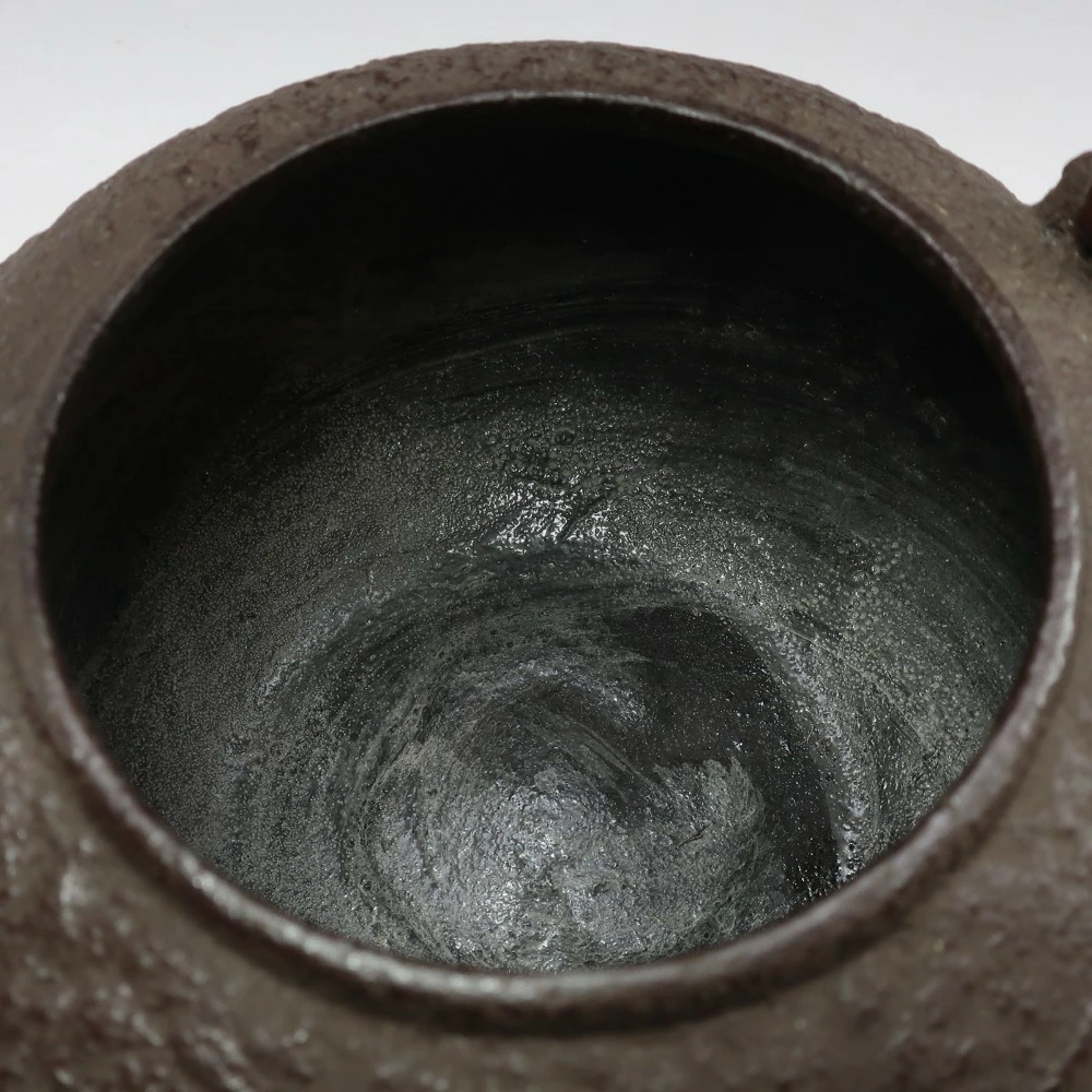 Iron kettle, silver-tipped lid, Gengensai-style, round, with the Ichiryu Manbai crest. _[Used] A-rank