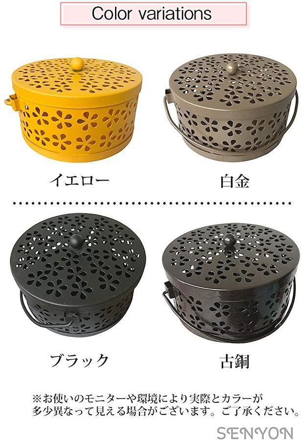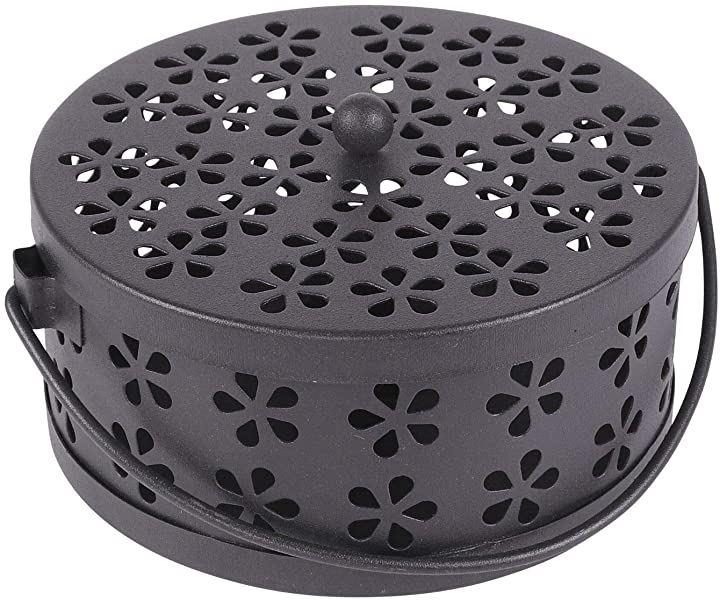 ・鉄製でどっしりした重さがあり、蓋と取っ手付きのオシャレな蚊取り線香ホルダー。