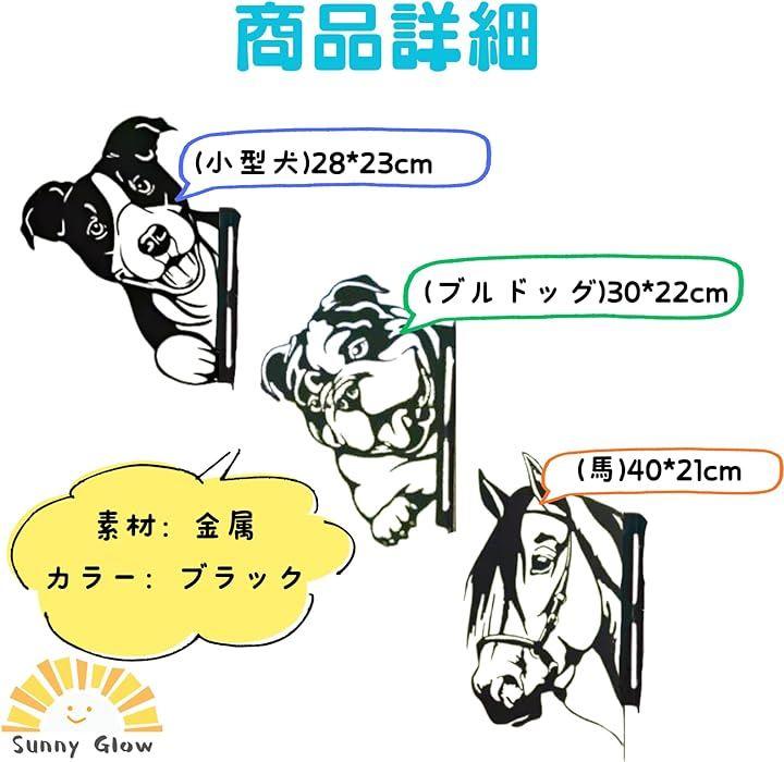 「商品詳細」(小型犬)28x23cm (ブルドッグ)30x22cm (馬)40x21cm 素材:金属、カラー:ブラック