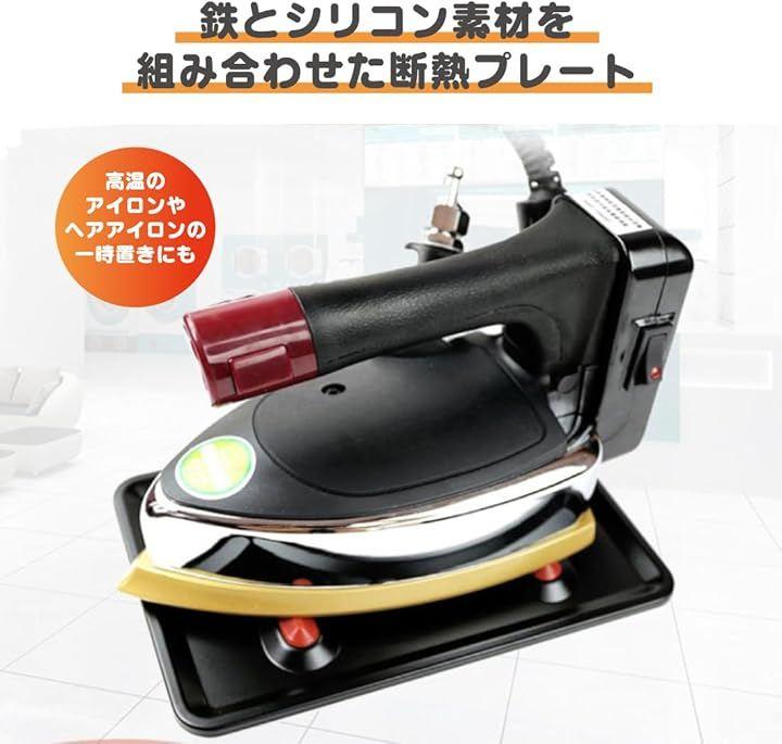 「耐熱構造」鉄とシリコン素材を組み合わせた断熱プレートで、高温のアイロンやヘアアイロンの一時置きにも安心して使用できます。