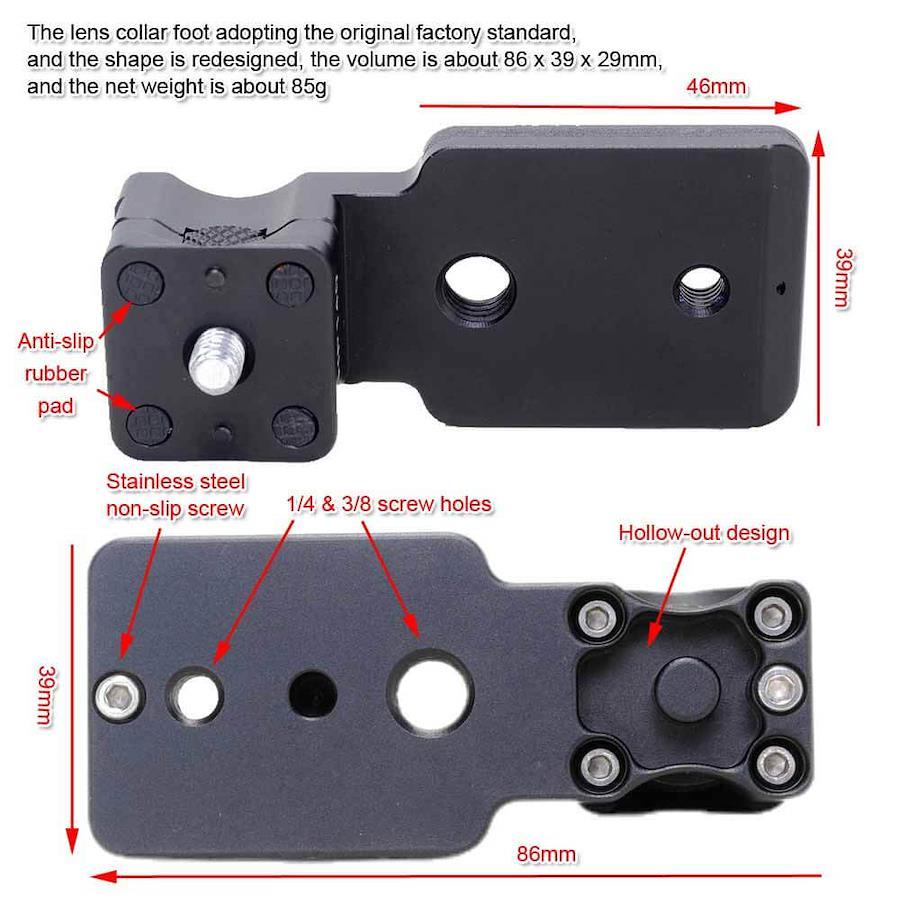 3.レンズブラケット襟 足 フットは元の工場標準を採用し、形状が再設計されました。体積は約86 x 39 x 29mmで、正味重量は約85gです。固定ネジにはバネが内蔵されています。