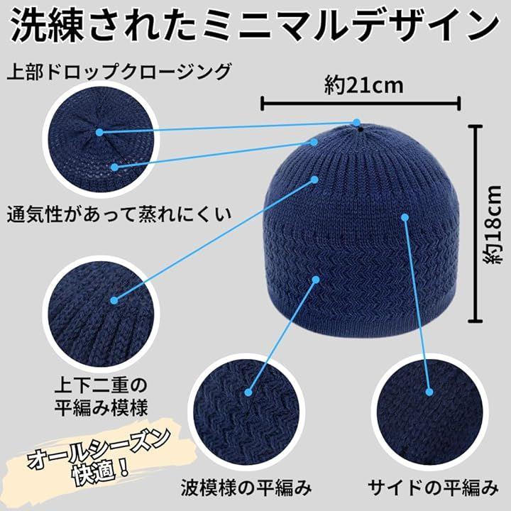 「快適なかぶり心地」軽量アクリル素材を使用したニット帽は柔らかく伸縮性があり、長時間の着用でも圧迫感が少なく快適です。