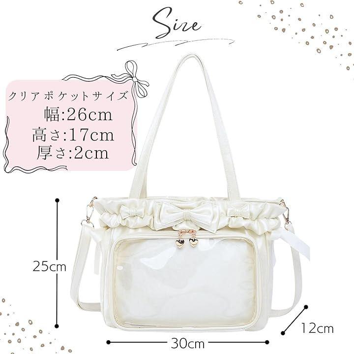 素材:PU・PVC サイズ:横 30cmx縦 25cmx奥行 12cm クリアポケット:横 26cmx縦 17cm