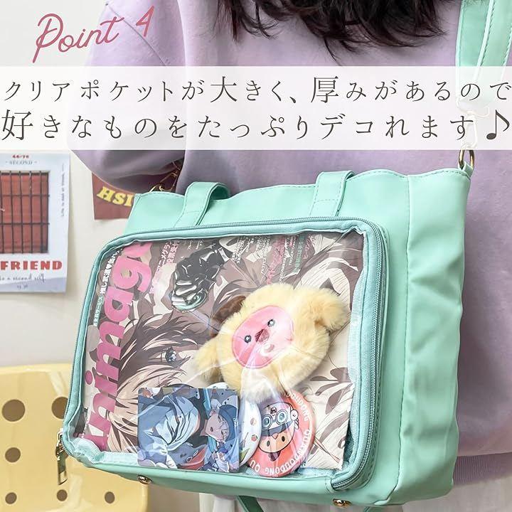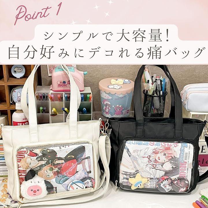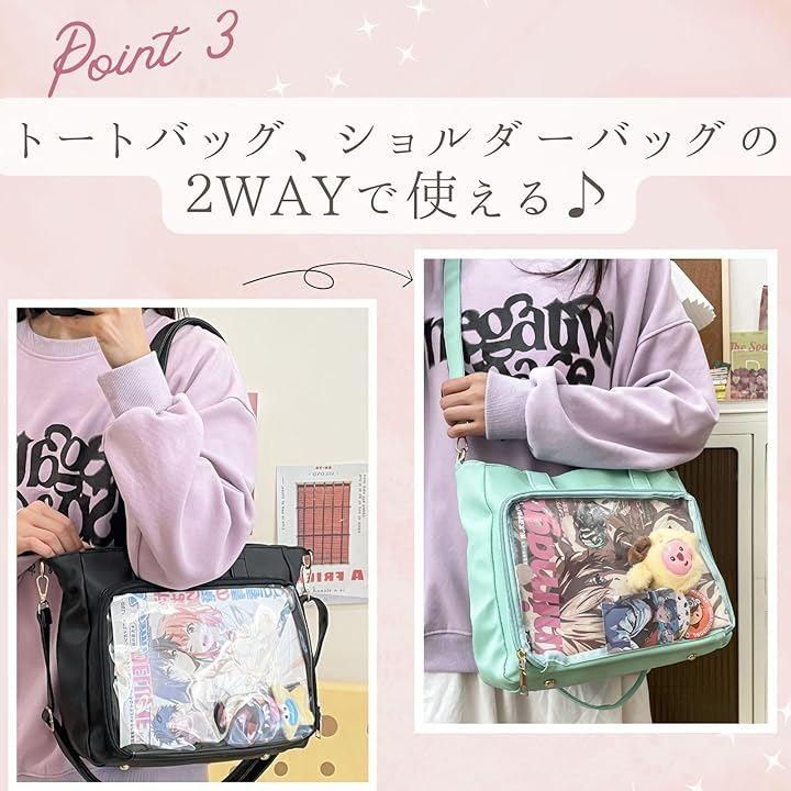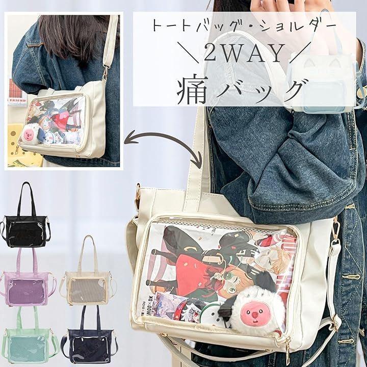 トートバッグとショルダーの2WAYで使える。シーンや目的に合わせて使い分けできる痛バックです。 ショルダー紐は着脱可能です。