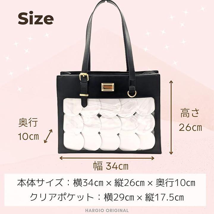 素材:PUレザー・PVC サイズ:横 34cmx縦 26cmx厚さ 10cm クリアポケット:横 29cmx縦 17.5cm