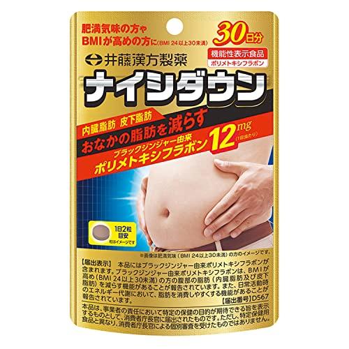 お腹の脂肪(内臓脂肪・皮下脂肪)に着目 ブラックジンジャー由来ポリメトキシフラボン配合 肥満気味の方やBMIが高めの方に(BMI24以上30未満) おなかの脂肪(内臓脂肪・皮下脂肪)を減らす機能が報告されているブラックジンジャー由来ポリメトキシフラボンを配合。肥満気味の方やBMIが高めの方(BMI24以上30未満)にオススメです。1日2粒でOKです。 機能性関与成分:ブラックジンジャー由来ポリメトキシフラボン 12 mg(2粒 0.5gあたり)