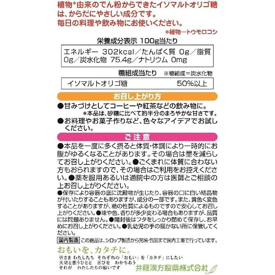 井藤のイソマルトオリゴ糖は、植物由来の自然な甘さで、使いやすいシロップタイプです。