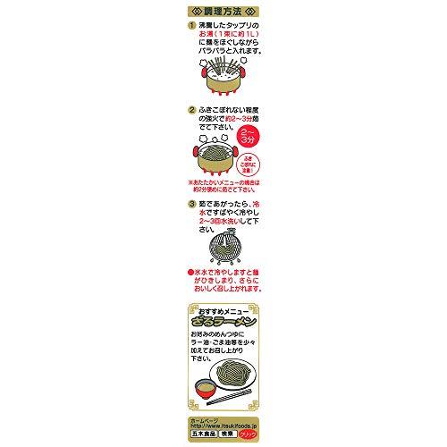 つるつる、シコシコした食感が特徴の細麺タイプの中華麺です(卵不使用)。ラーメン、つけ麺、、冷し中華、鍋のシメ、替え玉などの色々なメニューや用途にお使いいただけます。お鍋ひとつで約2分ゆで上げるだけです。乾麺ですので長期・常温保存商品。ローリングストックや備蓄、常備食品としても最適です。エネルギー250kcal、たんぱく質6.5g、脂質1.1g、炭水化物50.7g、食塩相当量1.5g ※この表示値は目安です。※ご参考:乾麺は茹でると約8~9割の食塩がお湯に溶け出します。:1人前(125g)当たり