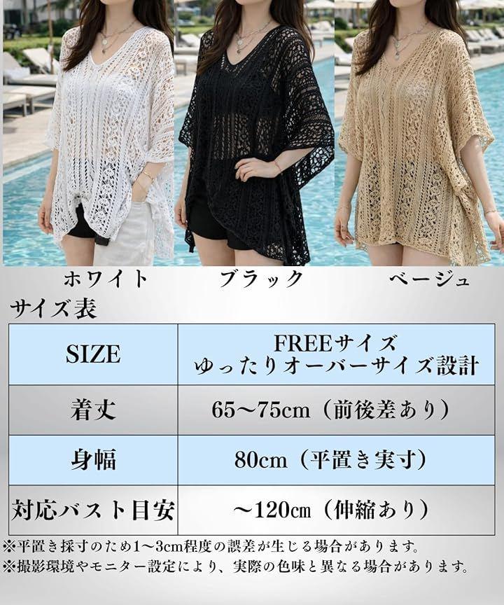 *「ゆったりフリーサイズと3色展開 」「カラー」ベージュ、黒、白の3色展開。