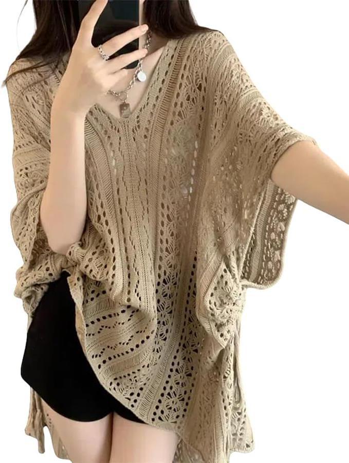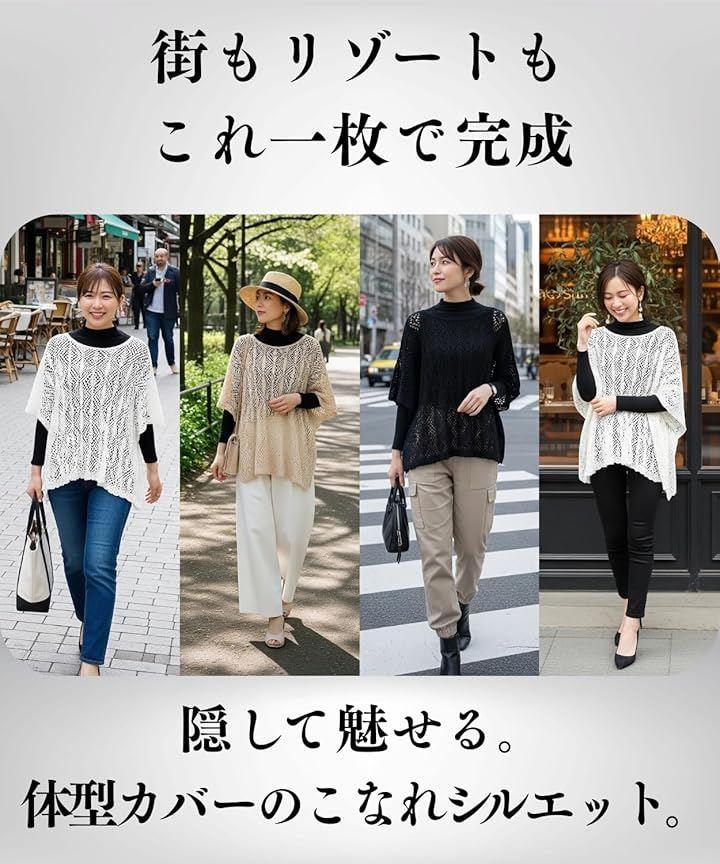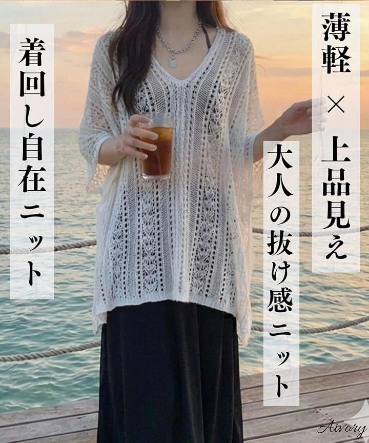 メッシュのようなレース風の中空編みデザインが、上品で洗練された大人の抜け感を演出します。