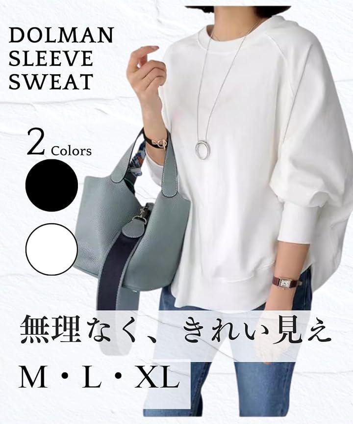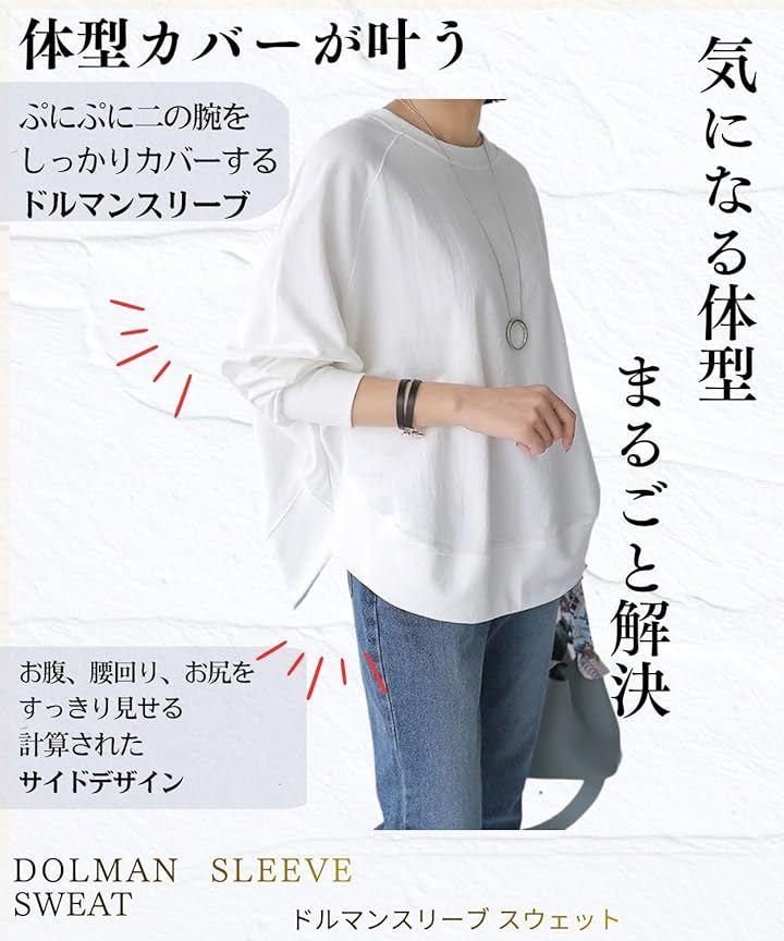 ドルマンスリーブとチュニック丈が、自然な着痩せを叶えます。