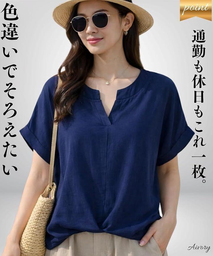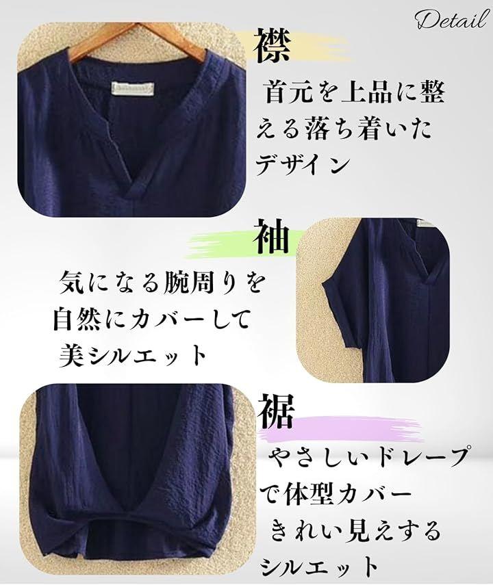 綿麻混で涼しく二の腕カバー 柔らかい綿麻混の薄手素材を使用し、通気性は抜群。