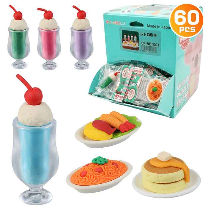 古き良き、「レトロ喫茶の定番メニュー」を詰め合わせた消しゴムセットです。