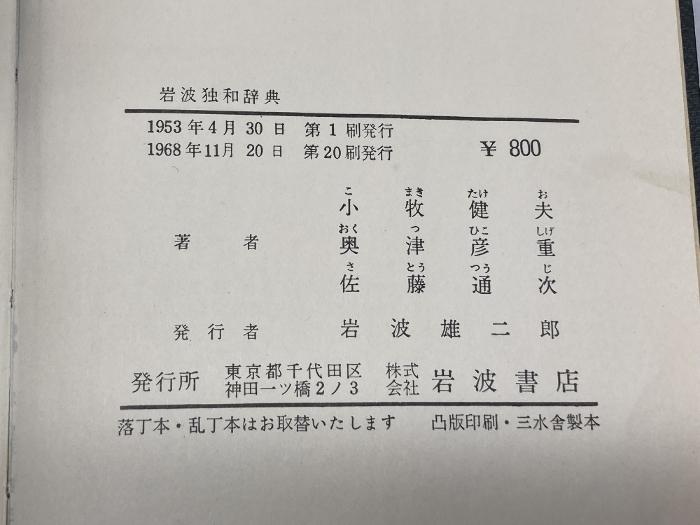 商品名:岩波独和辞典 岩波書店 小牧健夫 等編