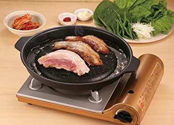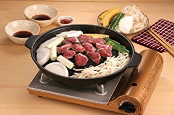 ●焦げ付かず後片付けカンタン、フッ素加工プレート●人気のコリアンメニューから焼肉、野菜焼き、全般に。いつもと違う外食メニューをご家庭でもお手軽に。サムギョプサル、ジンギスカン、カルビ焼きなど●脚がごとくにはまりこむストッパー構造