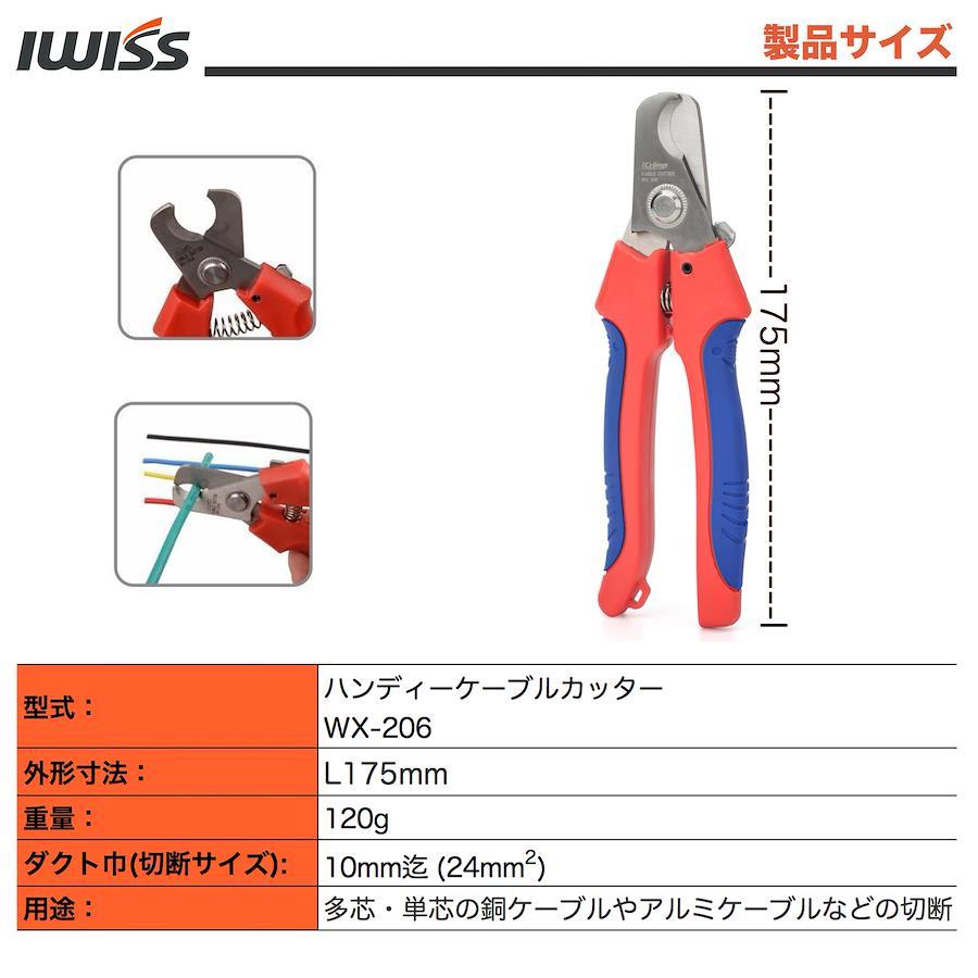 3営業日以内に発送≪新品未開封品≫:アイウィス(IWISS) ハンディーケーブルカッター アルミ・銅線専用 小型軽量タイプ 外径10mm/電線サイズ24sqまで WX-206