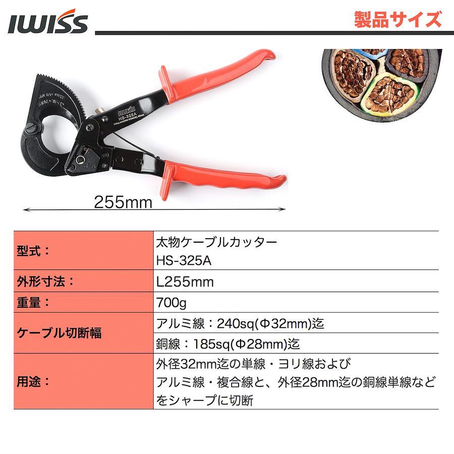 3営業日以内に発送≪新品未開封品≫:アイウィス(IWISS) ラチェット 太物 ケーブルカッター 電線サイズ240sqまで HS-325Aサイズ: 外径~32mm (~240sq) HS-325A