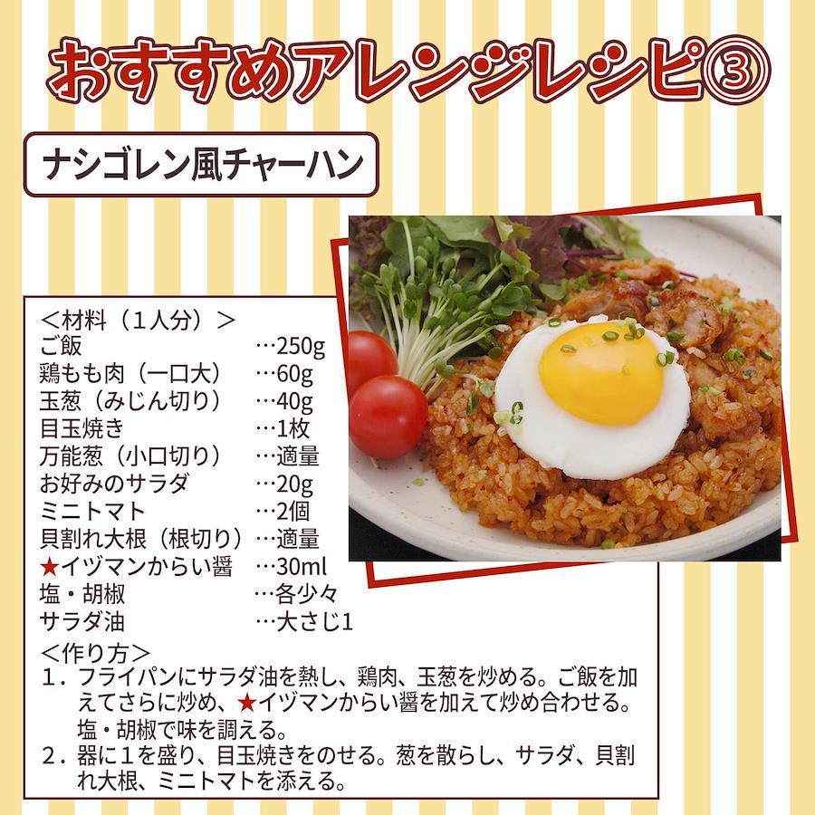 しょうゆ・みそ・りんご・とうがらしをブレンドして辛味・甘味・うま味のバランスを絶妙に仕上げた辛味調味料です。穏やかな辛味を持った甘口の調味料ですので、辛いものが苦手な方にもおすすめです。焼肉・餃子につけたり、から揚げにかけたり、野菜や魚介類に絡めるだけで簡単な一品に。その他、炒め物・鍋物やラーメンの味変等にご使用いただけます。【注意点】よく振ってからご使用ください。開封後は冷蔵庫に保存し、早めにご使用ください。賞味期限■製造より 8ヶ月保存方法■常温(開封後要冷蔵)【重要】メーカーによる商品リニューアルに伴いパッケージ(内容量も含む)変更が行われた場合、新パッケージでお届け致します事ご了承願います。