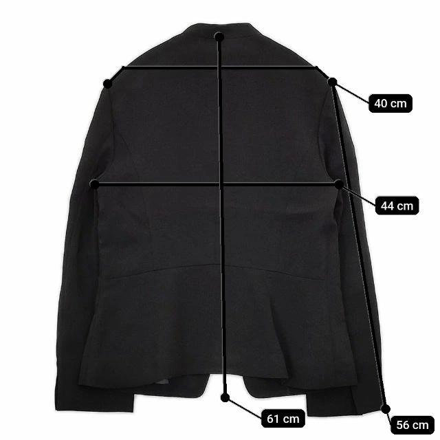 | 実寸サイズ | 肩幅:約40cm 着丈:約61cm 身幅:約44cm 袖丈:約56cm 備考 ポケットは内ポケットのみあり ※採寸画像がある商品はハンガーに吊るした状態での計測のため、平置きでの採寸とは差が生じる場合がございます。平置きでの実寸サイズをご希望の場合は、ご購入前に必ずご質問ください。 ※記載以外のサイズが合わないことを理由とした返品はできませんので、 記載部分以外で実寸サイズの気になる箇所があれば必ず購入前にご質問ください。 |