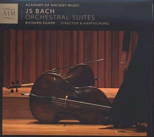 J.S.バッハの「管弦楽組曲」はブランデンブルク協奏曲にならぶ代表作ですが、最近は、この作品を「組曲」ではなく「居曲」と称する場合が増えています。もともとバッハ自身もこの作品を「組曲」とは呼ばず(バッハ自身の中で、組曲というものは別の定義があったため)、「フランス風の序曲から始まる作品」と位置づけていたようです。もともと「フランス風序曲」とはルイ14世の宮廷でバレエやオペラの開始の際に奏でられた音楽の形式で、ゆっくりとした開始部分と、速いフーガ風の部分の対照的な2部分からなる曲であり、これを通常の組曲の冒頭に取りいれたものが「フランス風序曲」と呼ばれ、このバッハの作品もそれに類するため、「序曲」と呼ぶのです。最近のバロック・オーケストラによる革新的過ぎるバッハも良いですが、やはり「丁寧なバッハ」を聴きたいという人にこそ、このエガーとアカデミー・オブ・エンシェント・ミュージックによる「管弦楽組曲」をオススメいたします。とは言え、エガーの演奏ですから普通のバッハではありません。この作品の背景を丹念に洗い出し、フランス風序曲の形式を重んじた上で、通常よりも更に低いフランス・ピッチを採用、落ち着いた雰囲気と名人芸が見事にマッチした名演を繰り広げています。また弦楽器パートは奏者が各一人、フルート、ファゴットも各一人、オーボエ、トランペットが3人、ティンパニとエガーのハープシコードという引き締まった編成によるすっきりとした響きも極めて魅力的です。