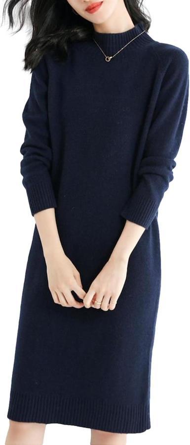 シンプルなので流行にとらわれず、合わせるアイテム次第で表情を変えるモックネックワンピースは今季の必須アイテム。