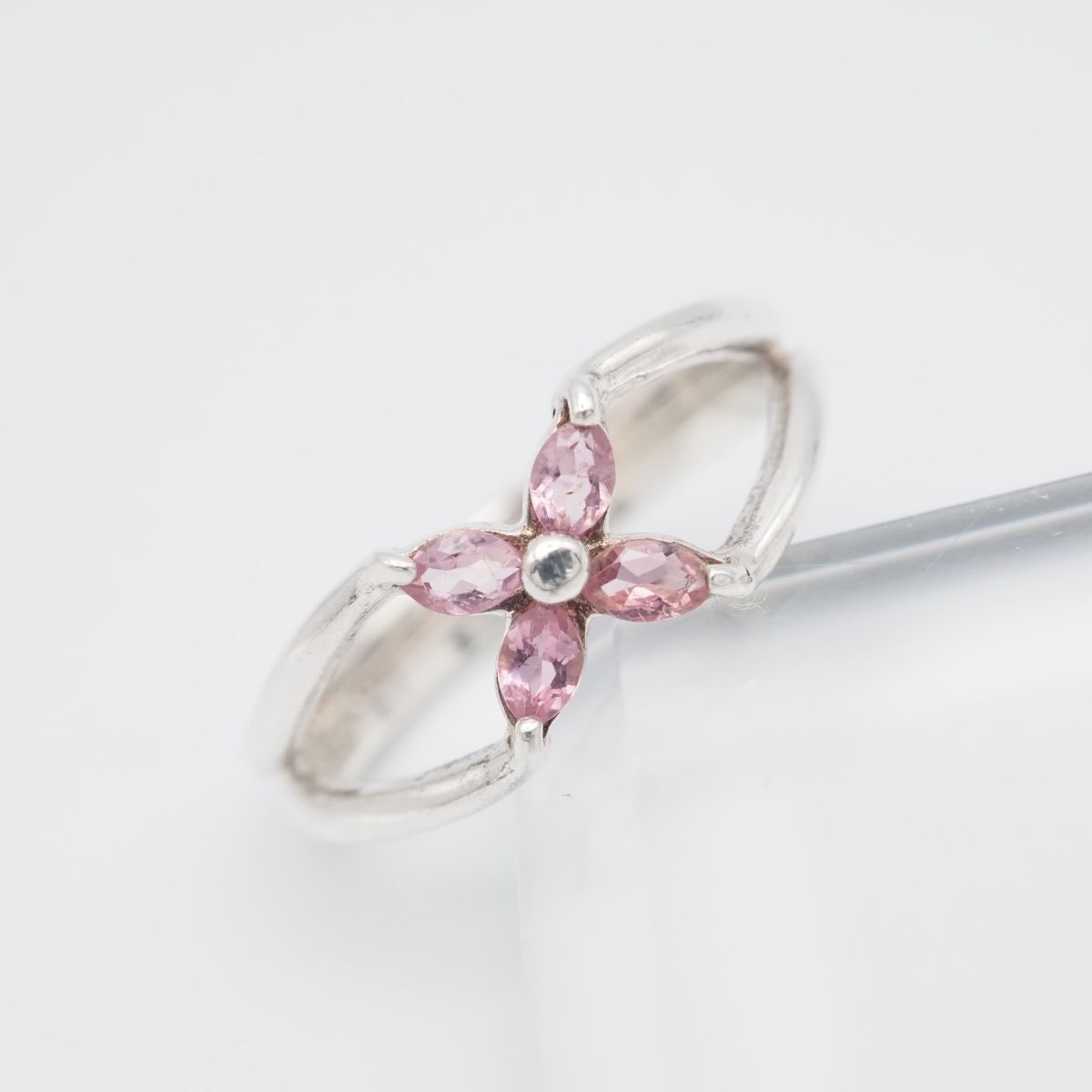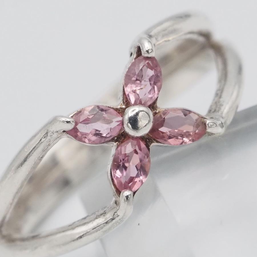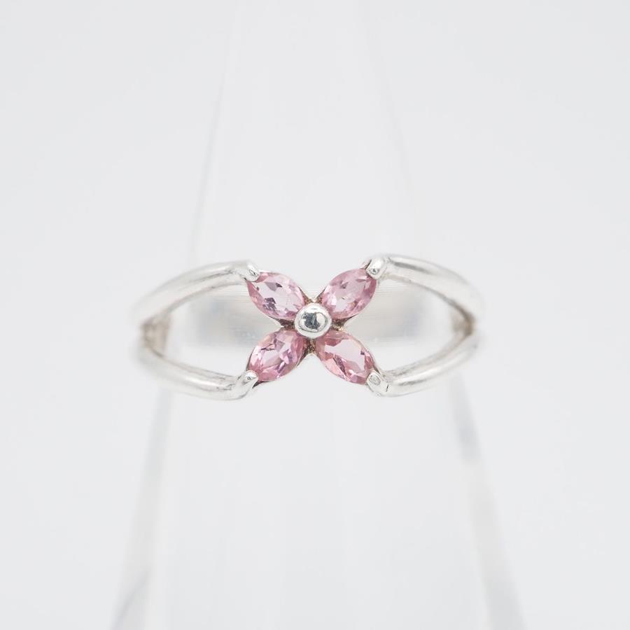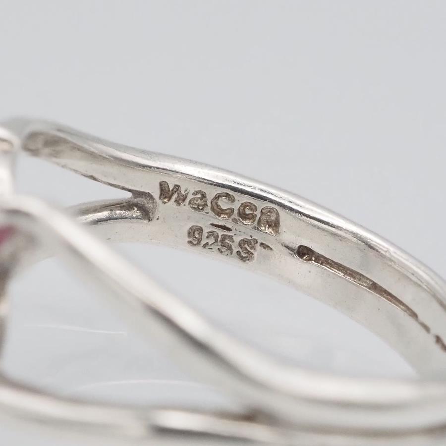 J048 wacca Pink Stone 925S Stamped Silver Ring, Size 7
