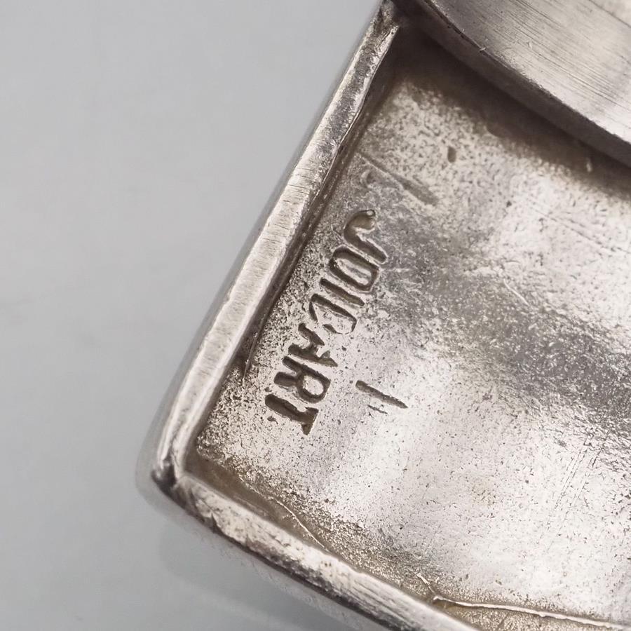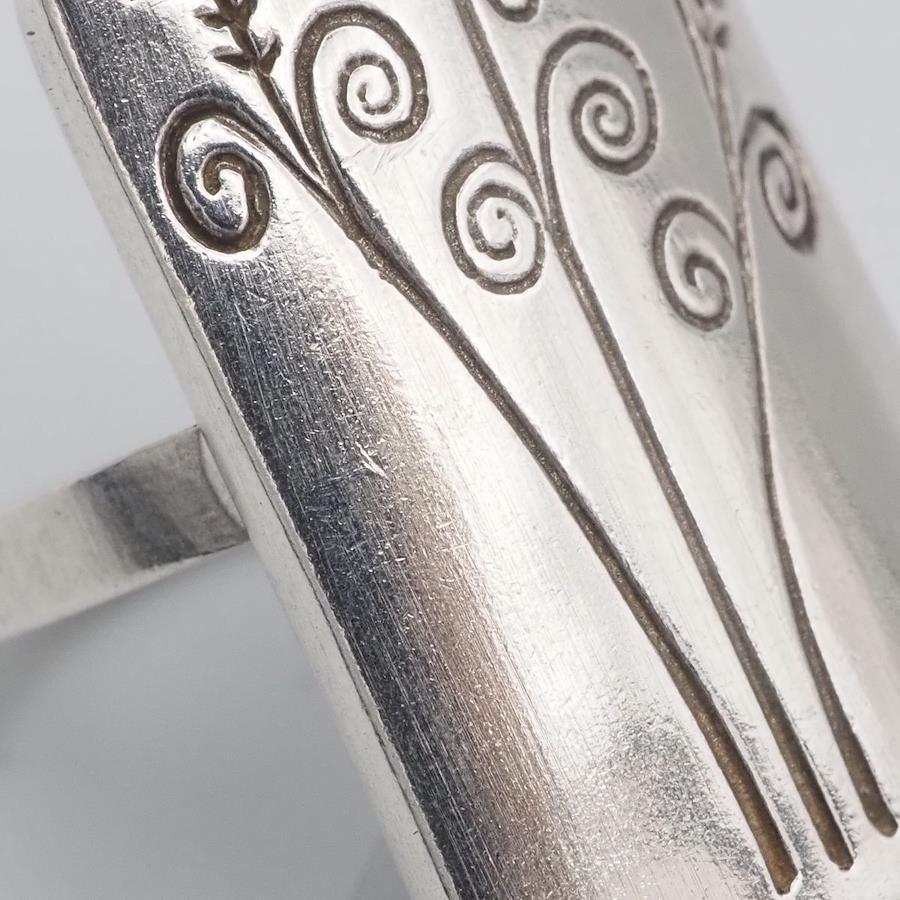 おそらく銀製かと思いますが、刻印が無いため断言できません。画像をたくさん掲載しておりますのでそちらでご確認とご判断をお願いいたします。