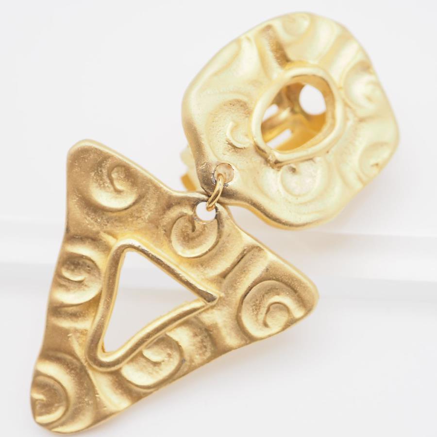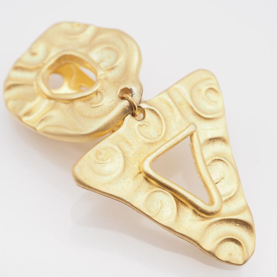 J319 Earrings, Single Ear, Large, Gold, Swing Design, Costume Jewelry
