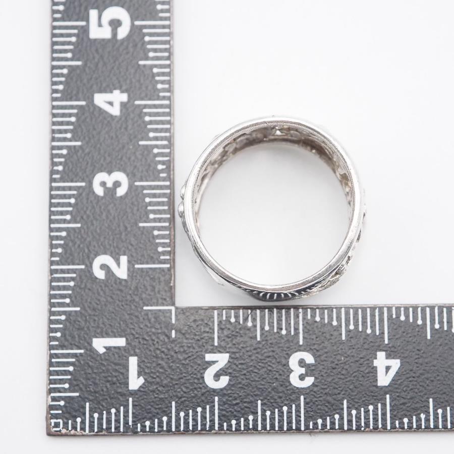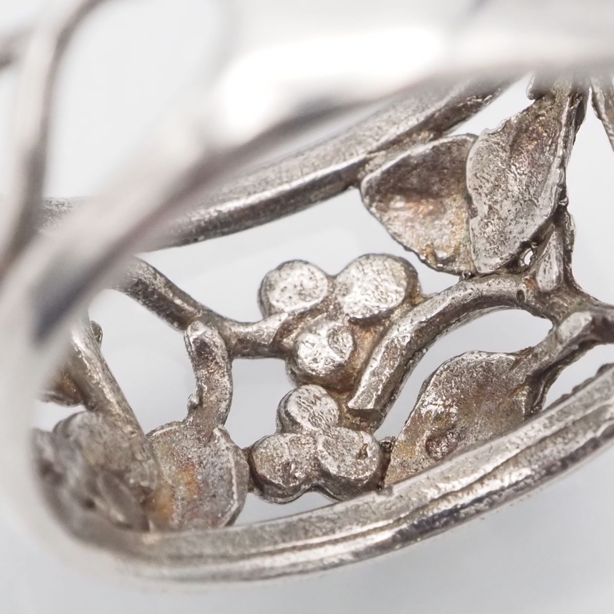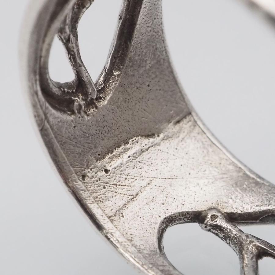 おそらく銀製かと思いますが、刻印が無いため断言できません。画像をたくさん掲載しておりますのでそちらでご確認とご判断をお願いいたします。