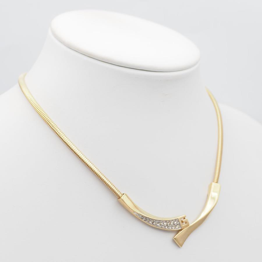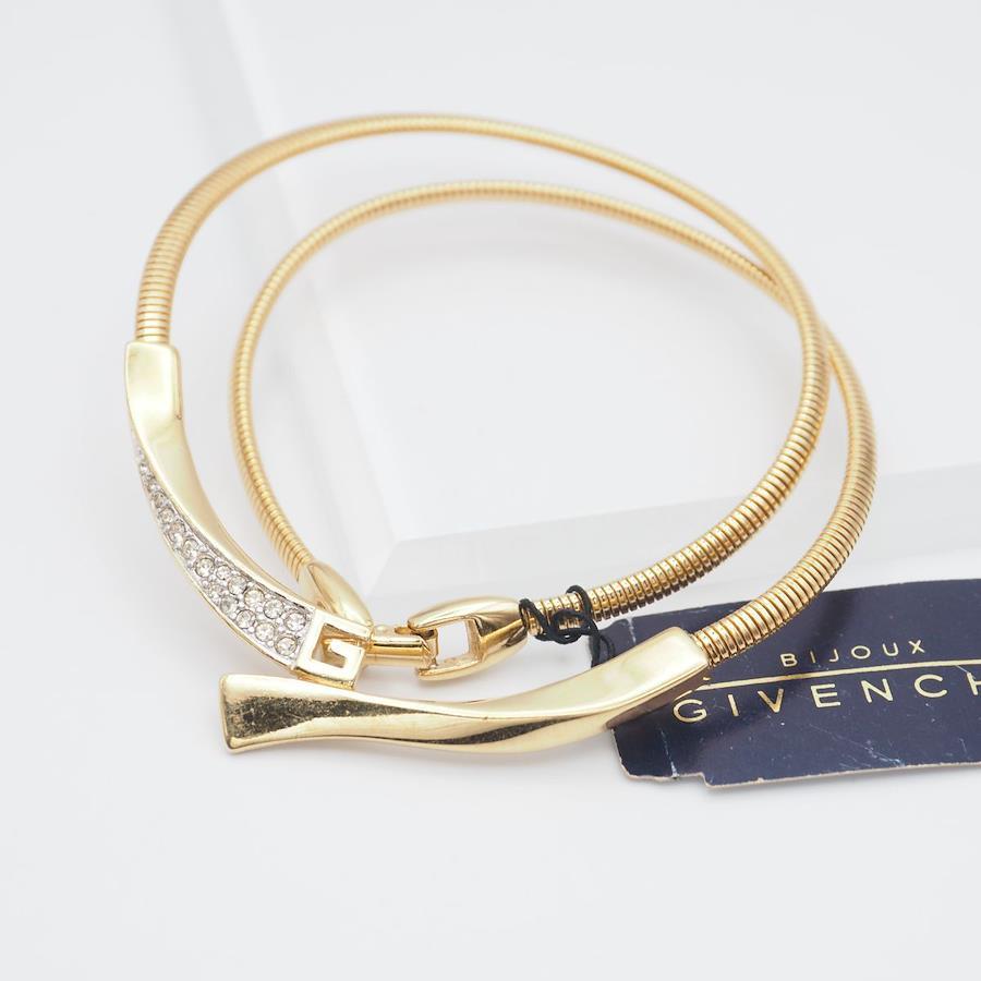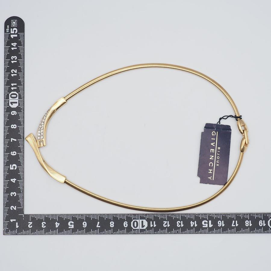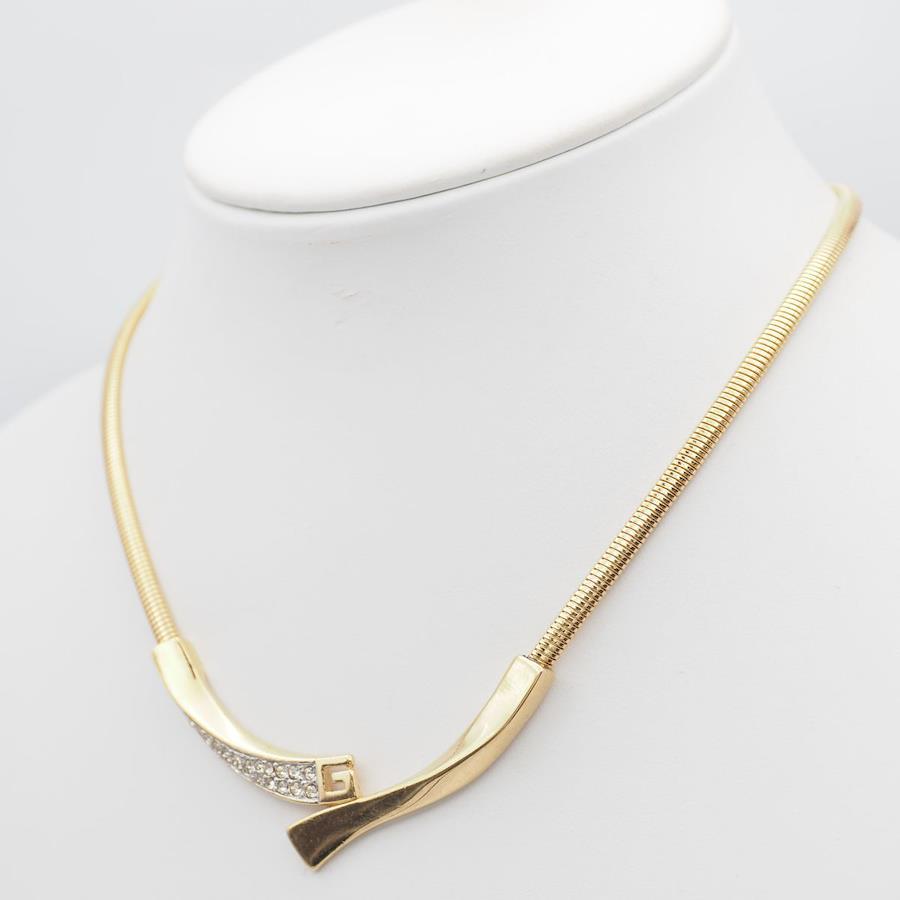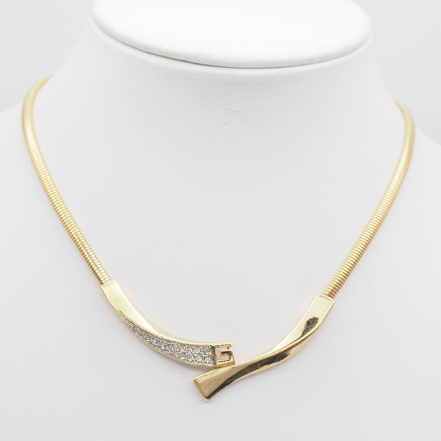 J459 Givenchy Necklace with Rhinestones and G Logo, Gold Design, Costume Jewelry