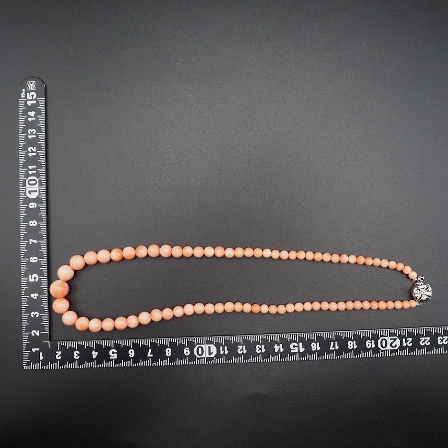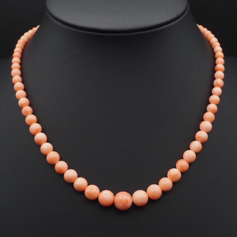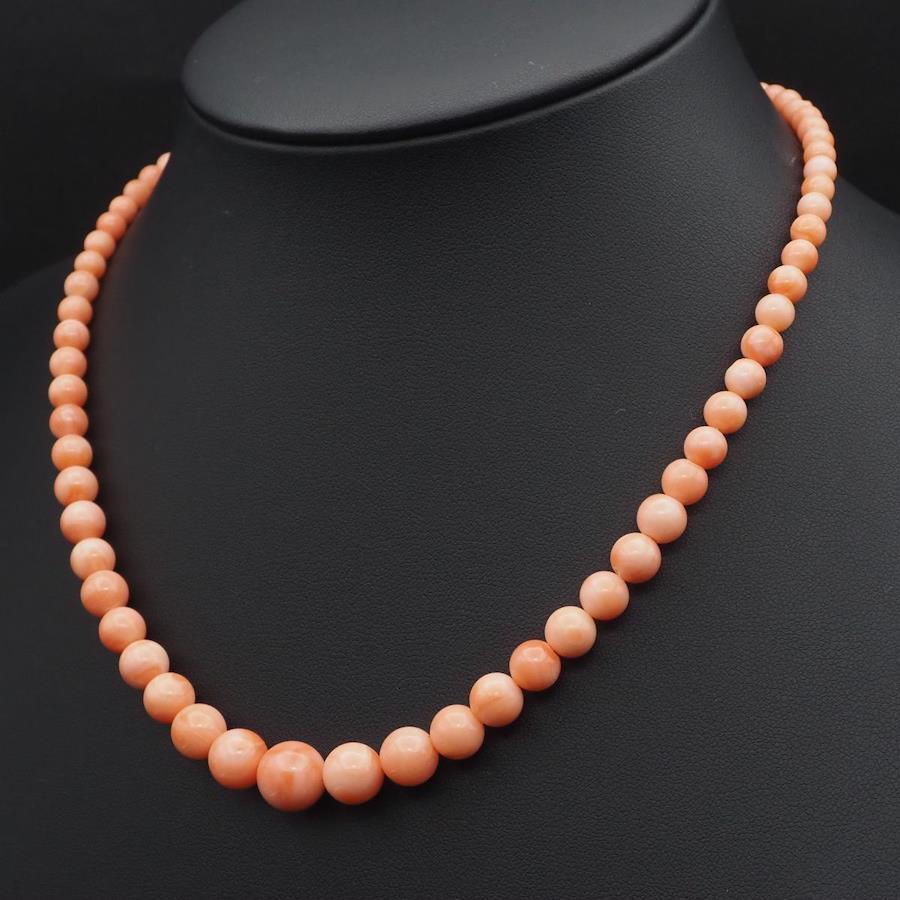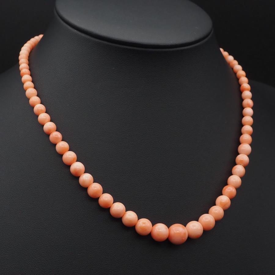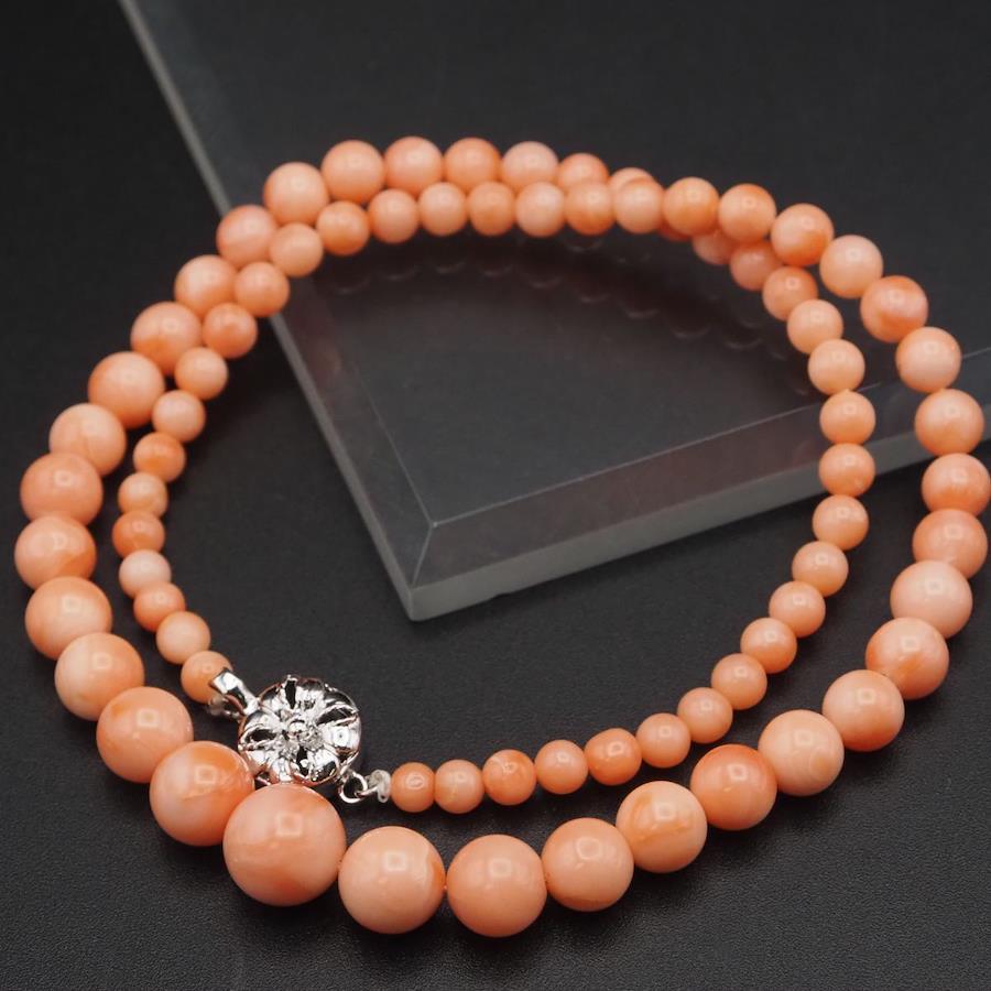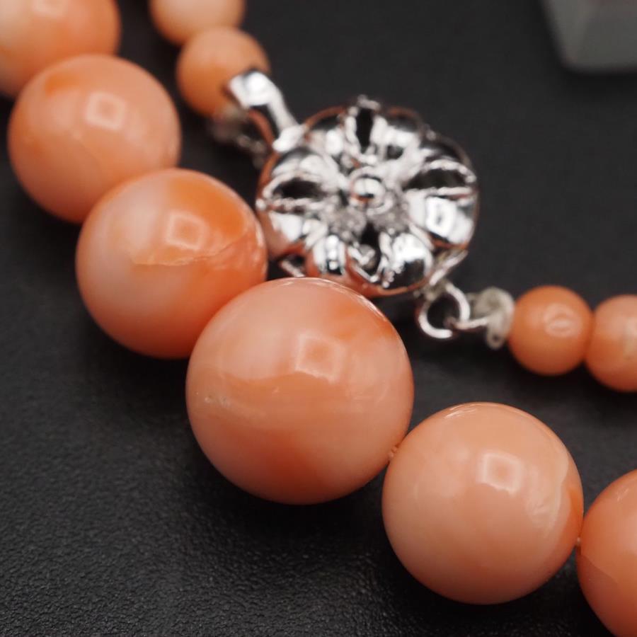 J484 Coral Necklace, GSILVER Stamp, Silver, March Birthstone
