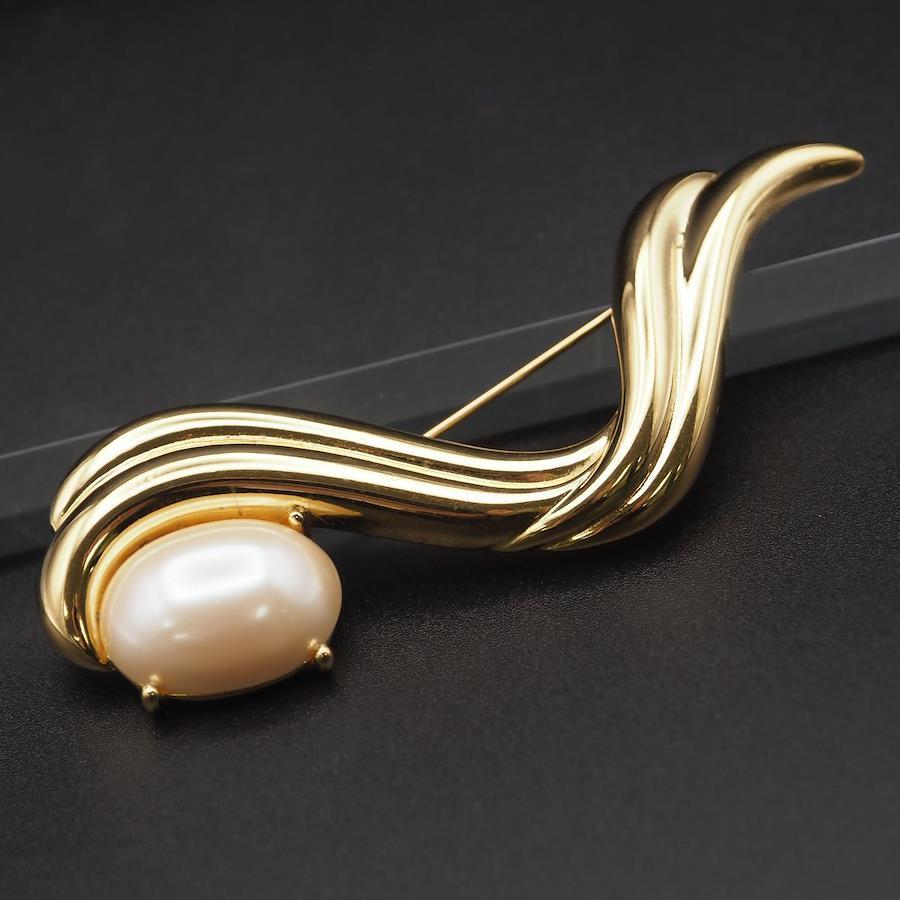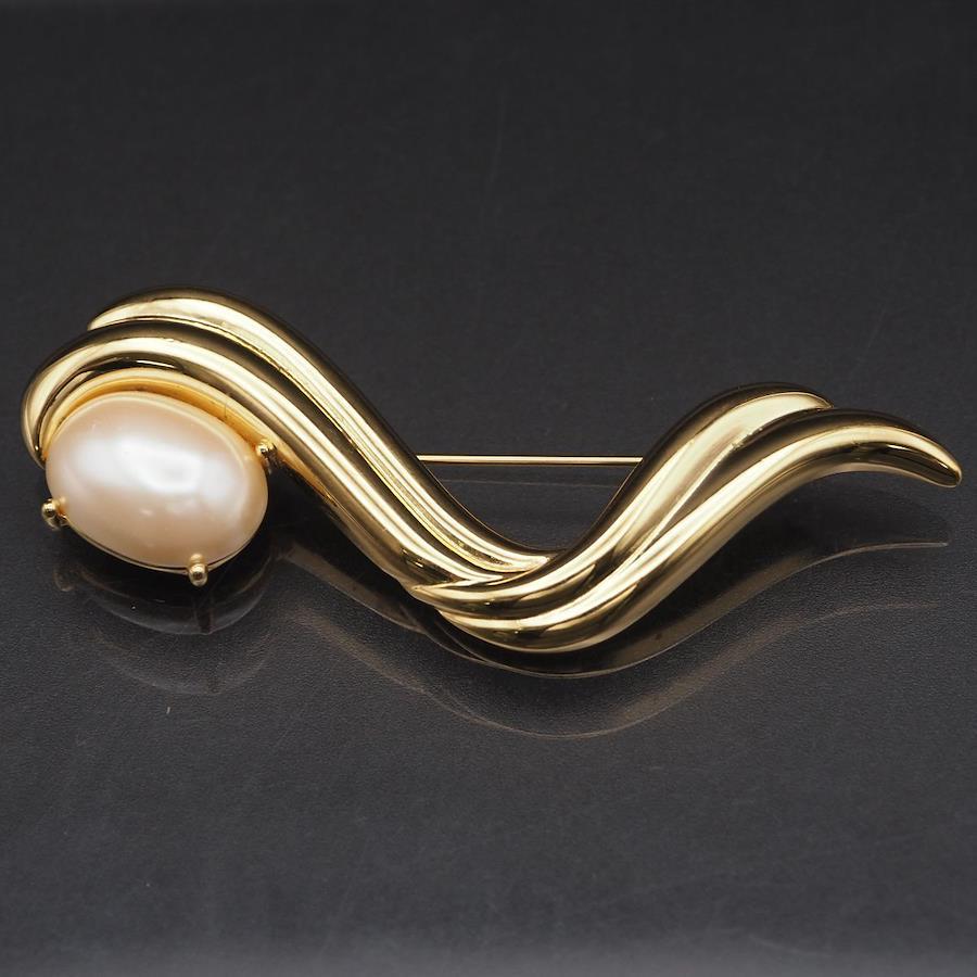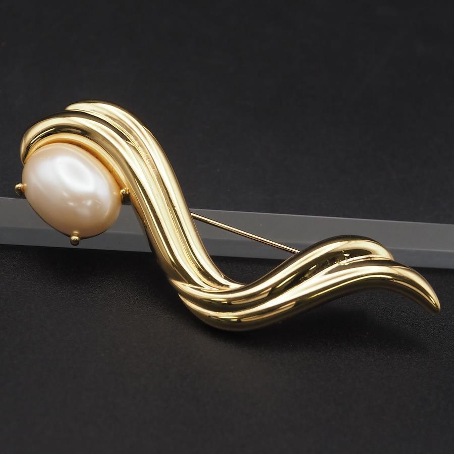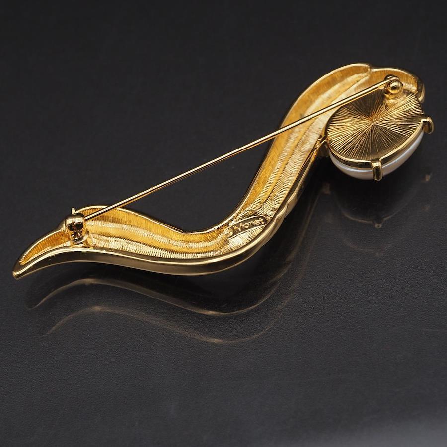 J535 MONET Monet Brooch with Faux Pearl and Gold Design Costume Jewelry