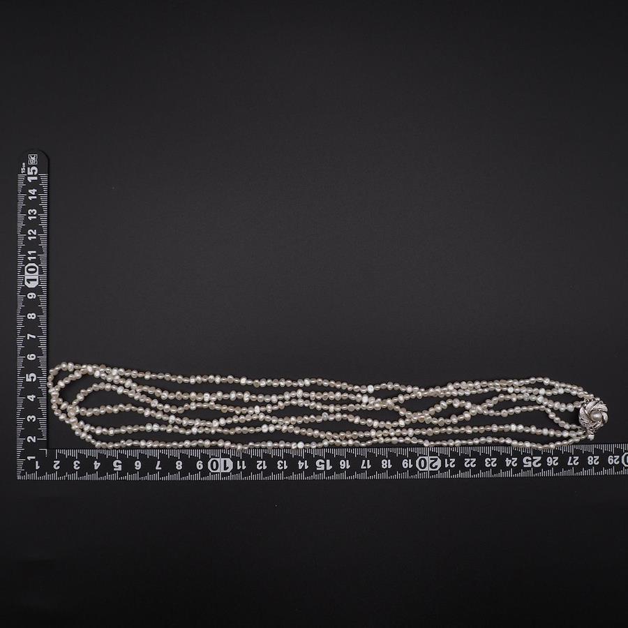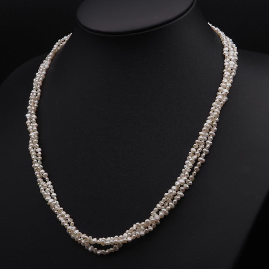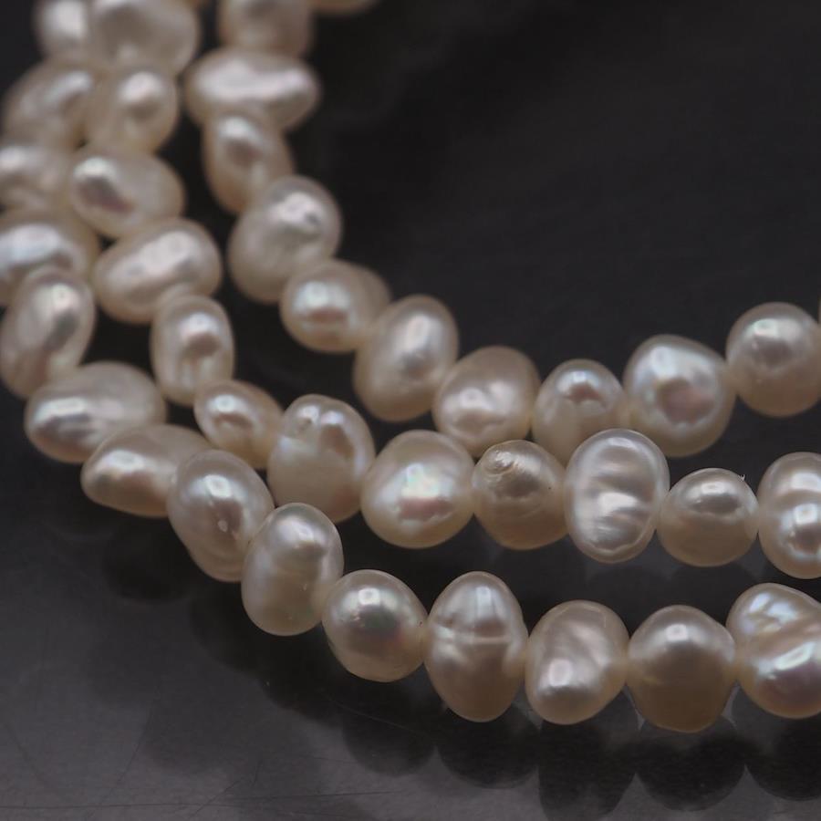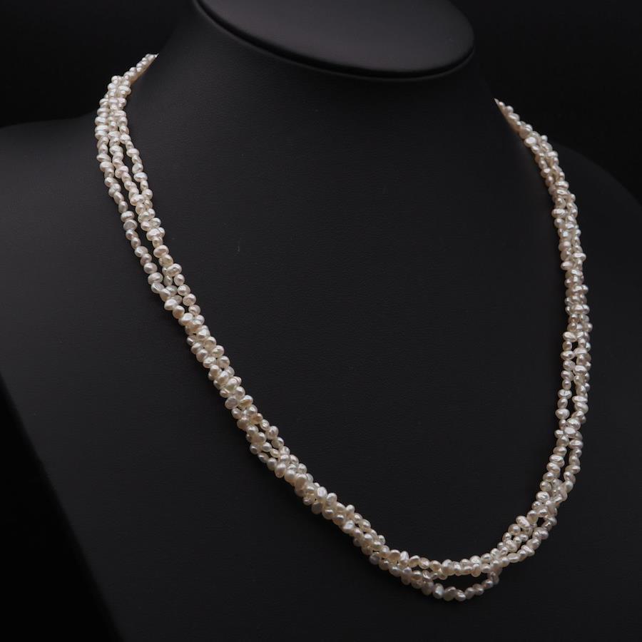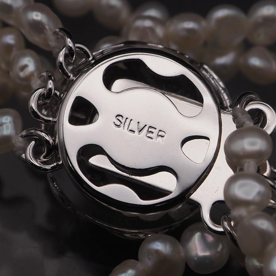 J588 Freshwater Pearl Necklace, Silver Stamp, 3-Strand Design, June Birthstone