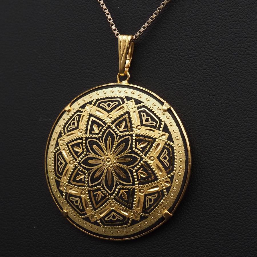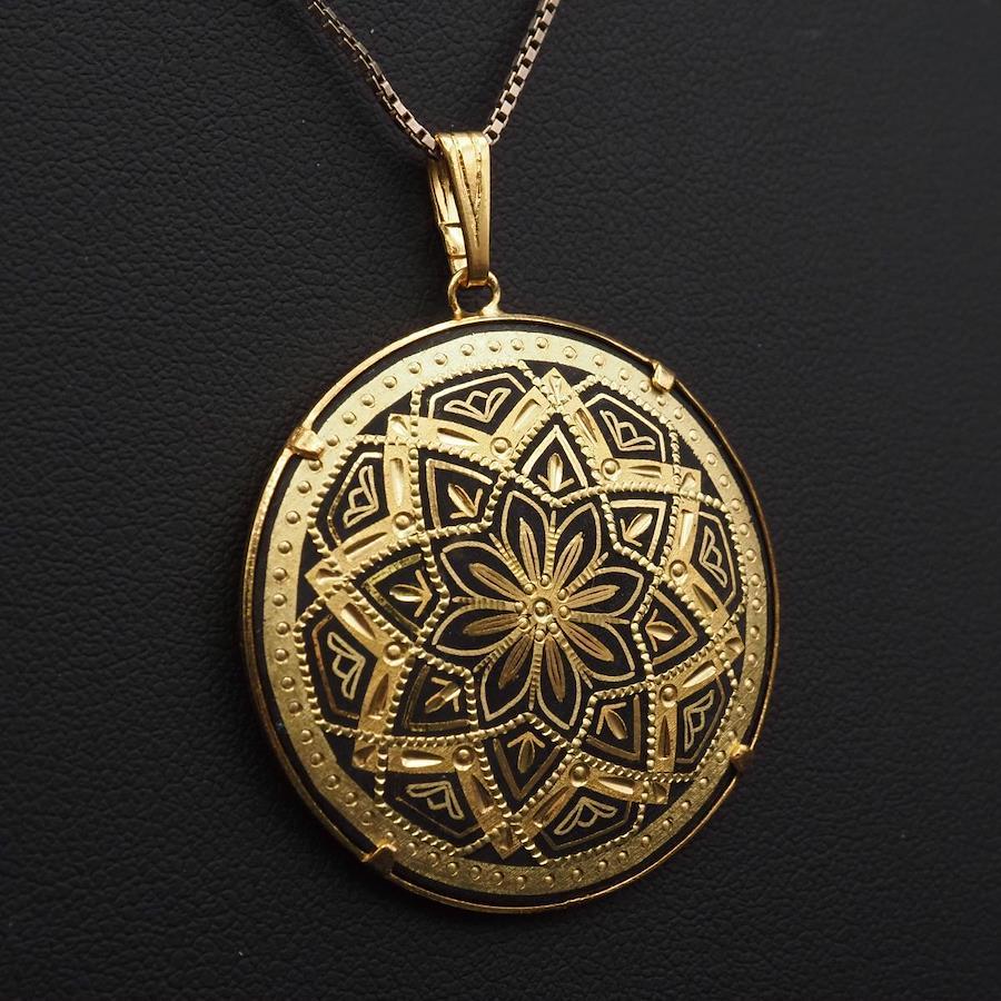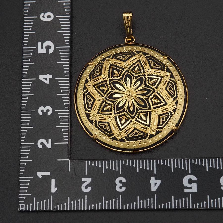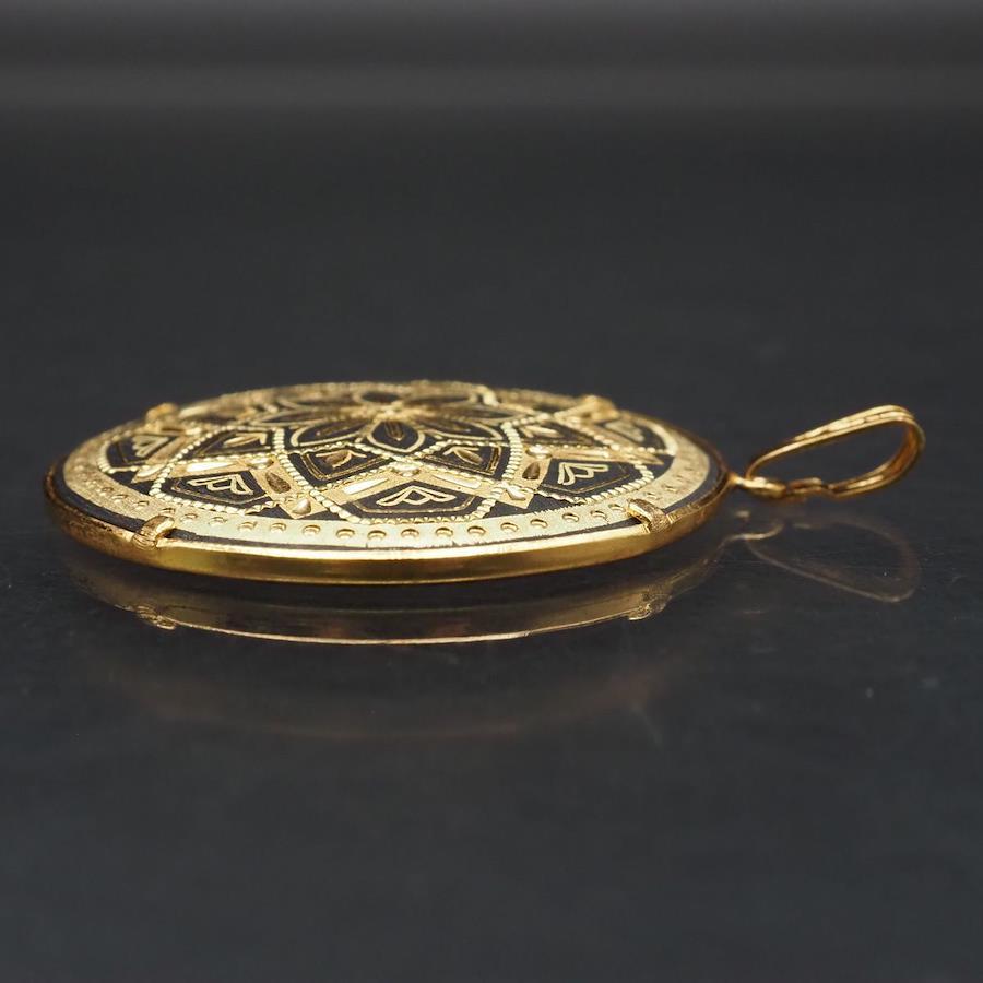 J647 Goldwork Inlaid Pendant Top, Damasquinade Geometric Pattern, Gold Design Charm Head