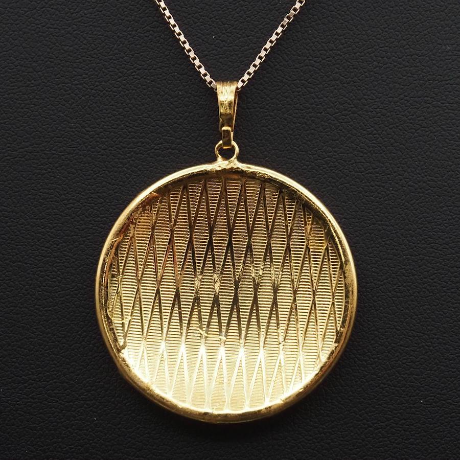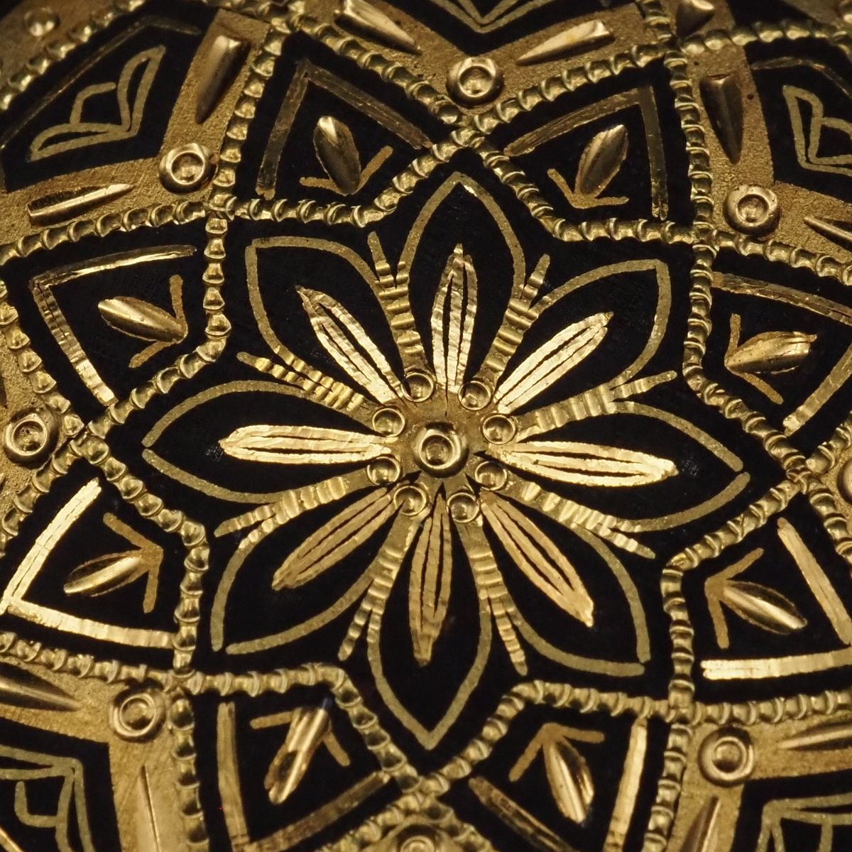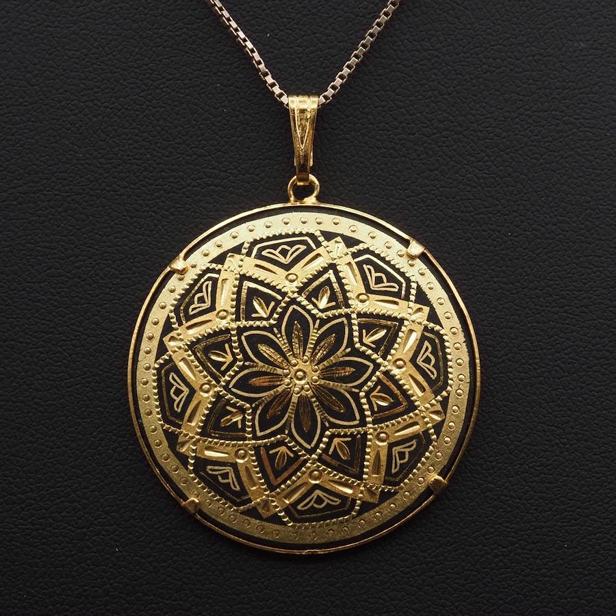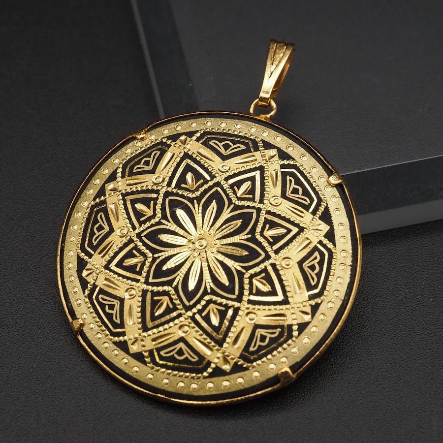 J647 Goldwork Inlaid Pendant Top, Damasquinade Geometric Pattern, Gold Design Charm Head