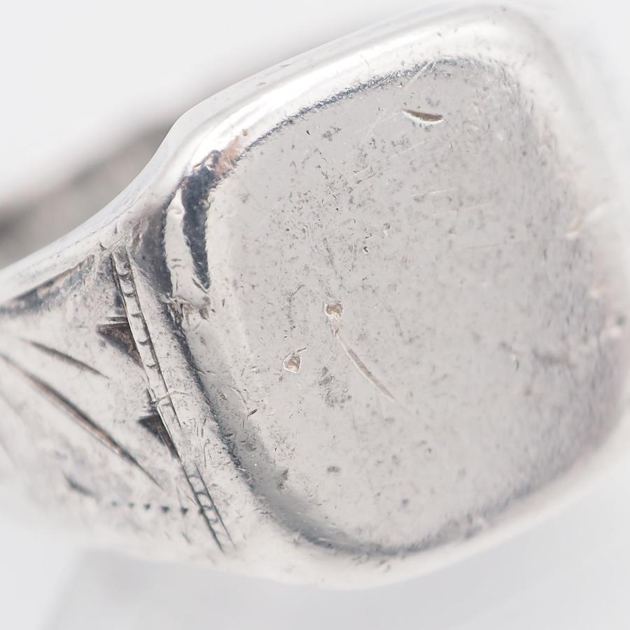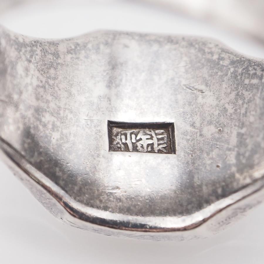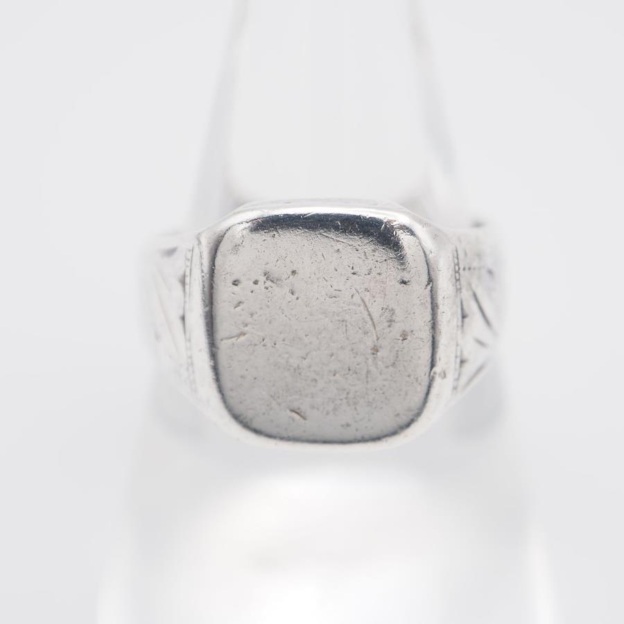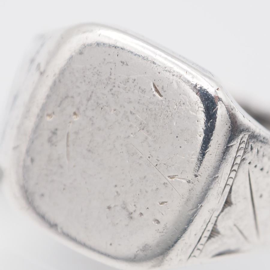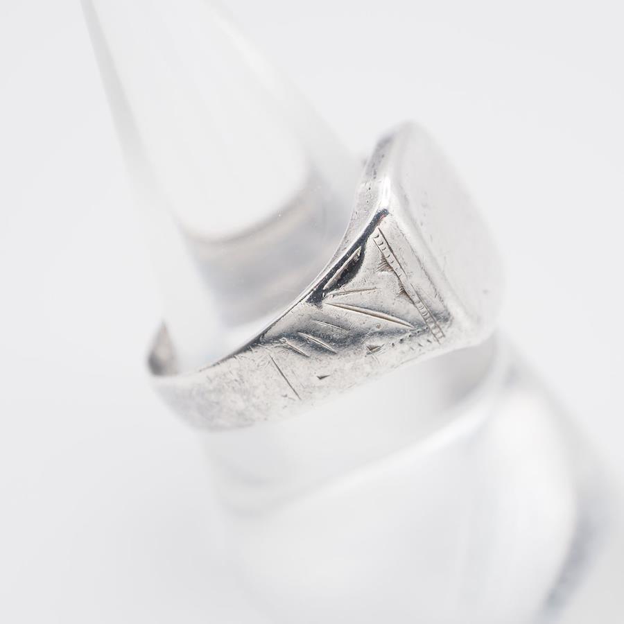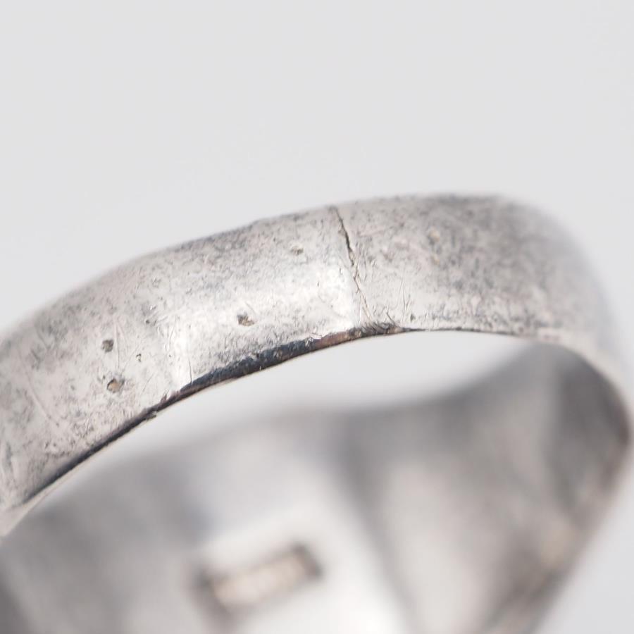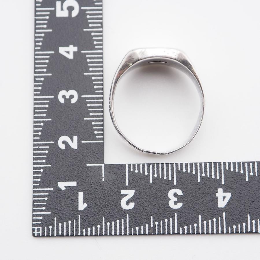 J649 Vintage Sterling Silver Ring with Stamp Design, Size 17