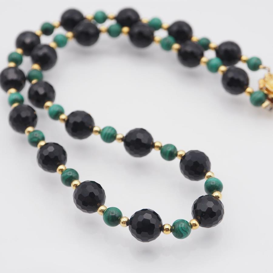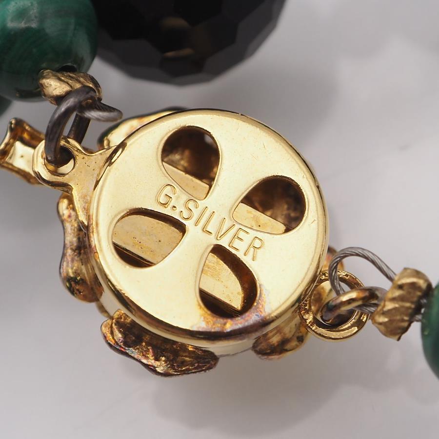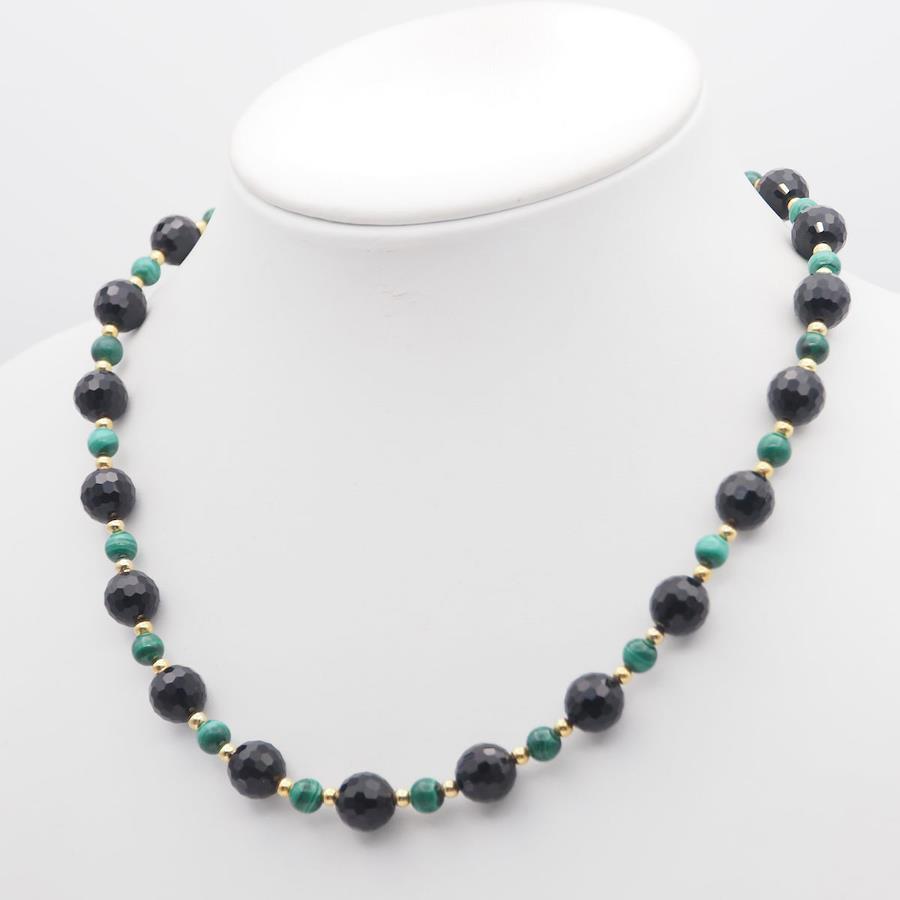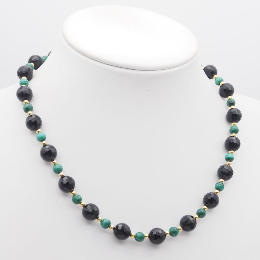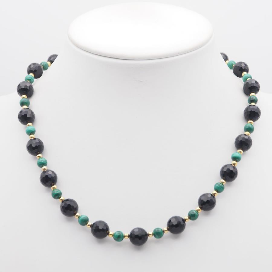 J728 Onyx, Malachite, and Peacock Stone Necklace with GSILVER Stamp, Mirror Ball Cut, Gold Design